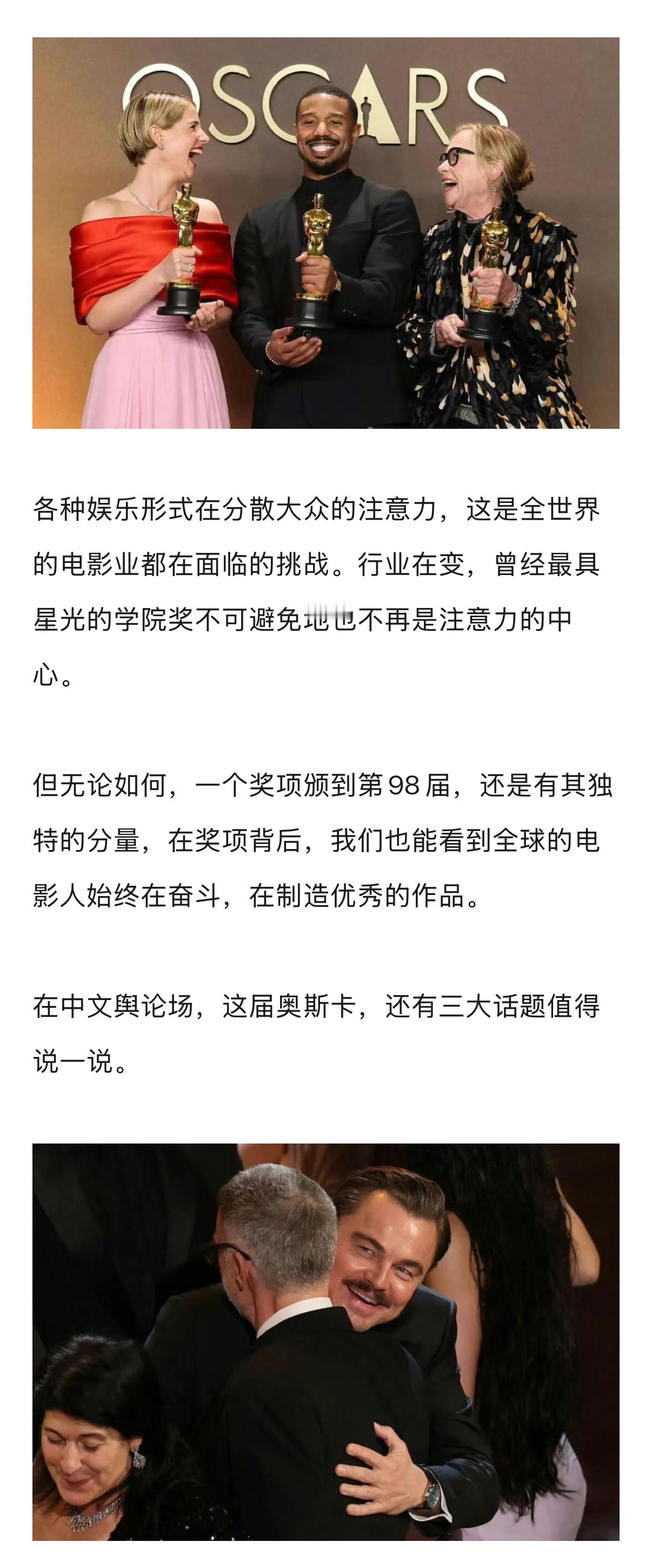 此外,《一战再战》获得六项大奖领跑,保罗•托马斯•安德森(PTA)收获迟到的加冕。奥图姆•杜拉德•阿卡波成为奥斯卡历史上第一个获摄影奖的女性。迈克尔•B•乔丹成为第三位80后奥斯卡影帝,也是第六位黑人影帝……行业终究需要一代新人换旧人,年轻一代拿奖是好事。娱理独家↓