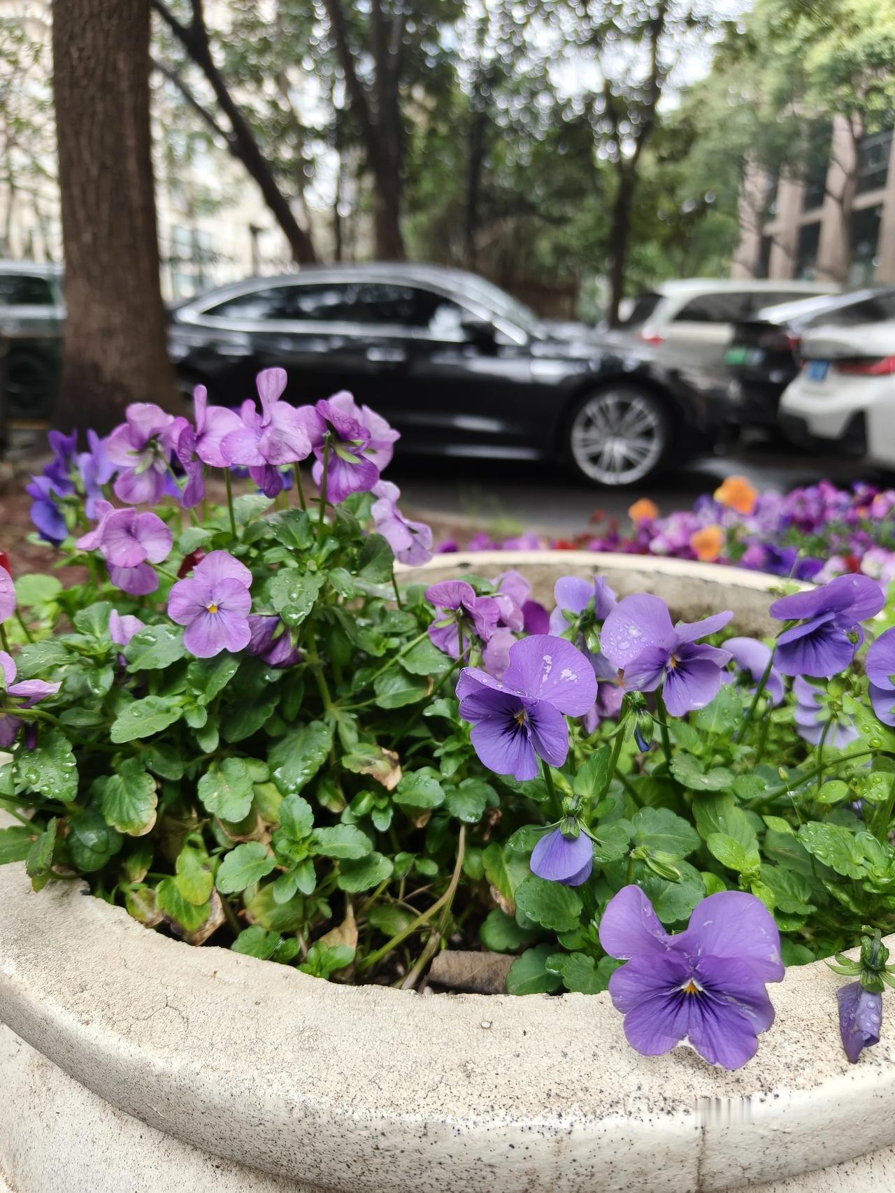 这小花花∠※应该叫~三色堇吧! 那么问题来了,它到底🈶几种颜色呢? 没记错的话应该还有白色的,不过这块没有…[捂脸]