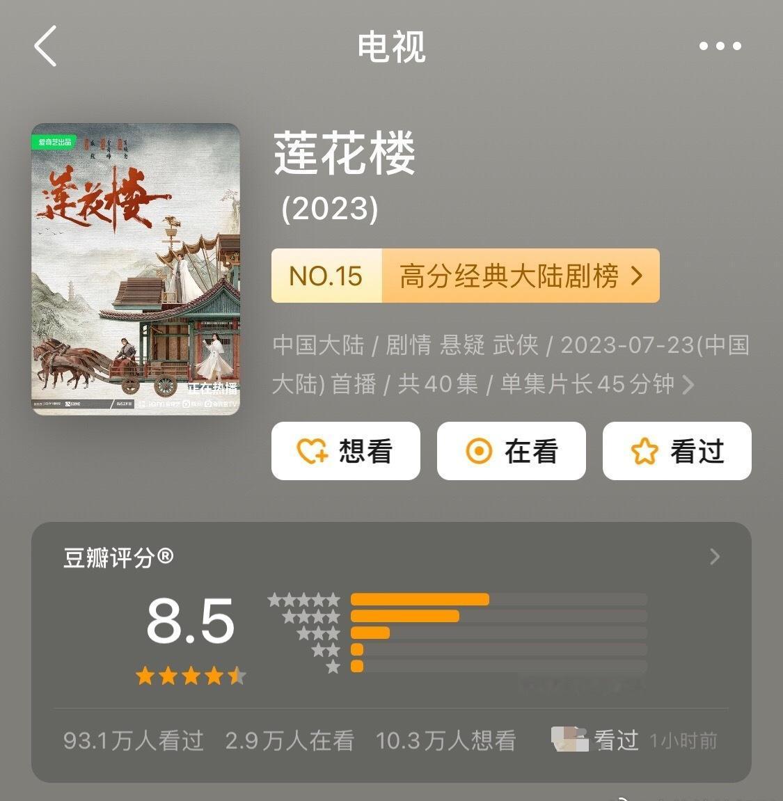 成毅主演《莲花楼》抖话题破3️⃣0️⃣0️⃣亿了! db几个箜组很明显的ggz总是不让ie夸莲花楼,大概是因为超过90W人评分的8.5超长尾高分剧目前只有成毅🈶️[可爱] 还有一个冷知识:莲花楼在🥝弹幕数1.7亿+,互动量5.8亿+,剧粉全手搓,是没有限定词的全平台史冠☝️