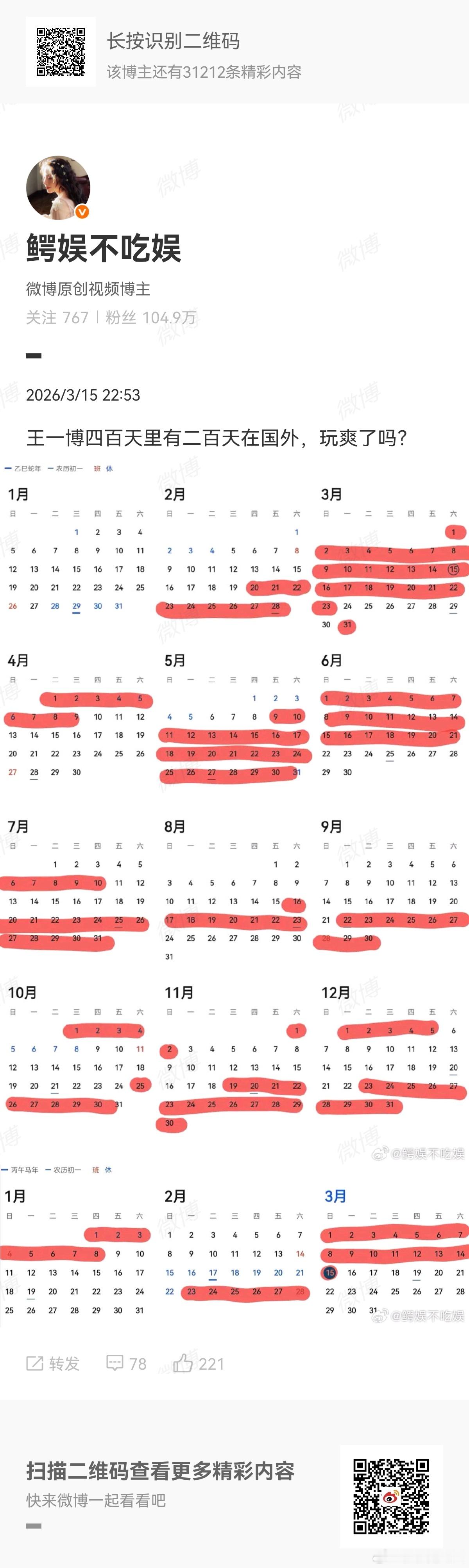 用户10xxx37 2026-03-18 21:57 气死某家黑子了。博国际巨星,代言高奢一大堆。去米兰时装周宣传JC;去西班牙拍摄罗意威广告;去纽约时装周参加香奈儿高定大秀;去巴黎时装周参加手工坊高定;刚又去巴黎时装周横跨香奈儿、罗意威、法鳄观秀回来,又去瑞士洽谈法国霞慕尼的品牌合作。去年还去北美加拿大拍摄《探2》好几个月,回来参加了个部长级会议,就又受始祖鸟之邀,去加拿大攀岩圣地进行了攀岩大佬聚会;回来不久完成全运会红歌演唱录制,就又去新西兰拍摄户外广告;《探2》回来不久,又2次去挪威拍摄海丽汉森大片广告,一部航海广告,一部滑雪广告…人家是国际巨星全球到处飞挣大钱,不像某家只会拍无效进组的戏。你们羡慕嫉妒恨造谣人家,能黑倒人家吗