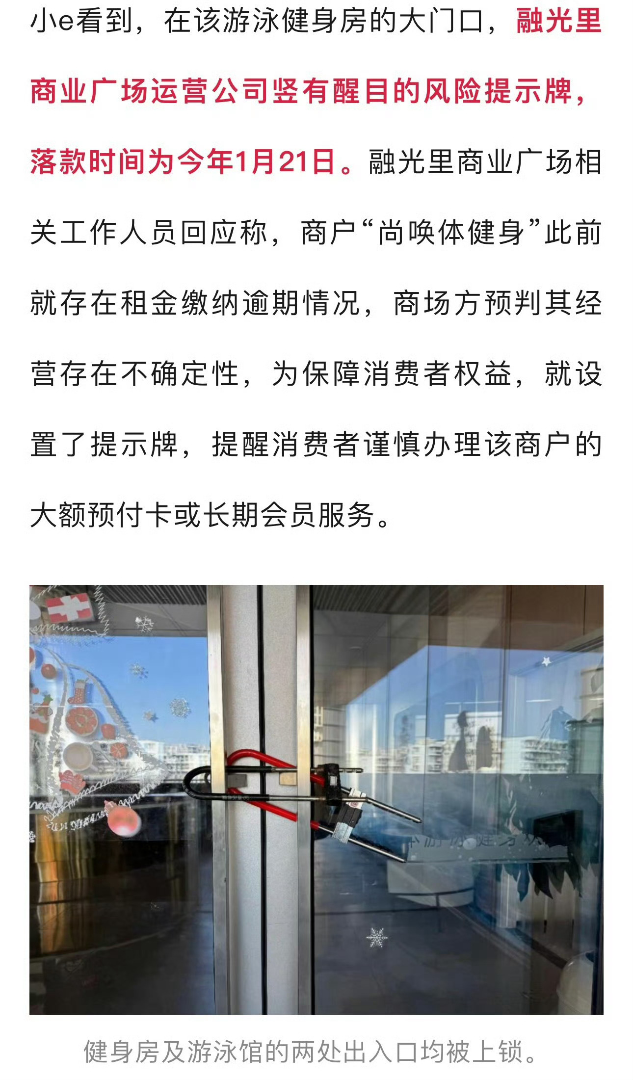 宁波融光里一健身馆开业数月即闭店套牢会员 ,我们很多会员充值办理了4580元的年卡和私教课…建议消费者保留好付款记录、合同等凭证,先行采取法律途径维权。