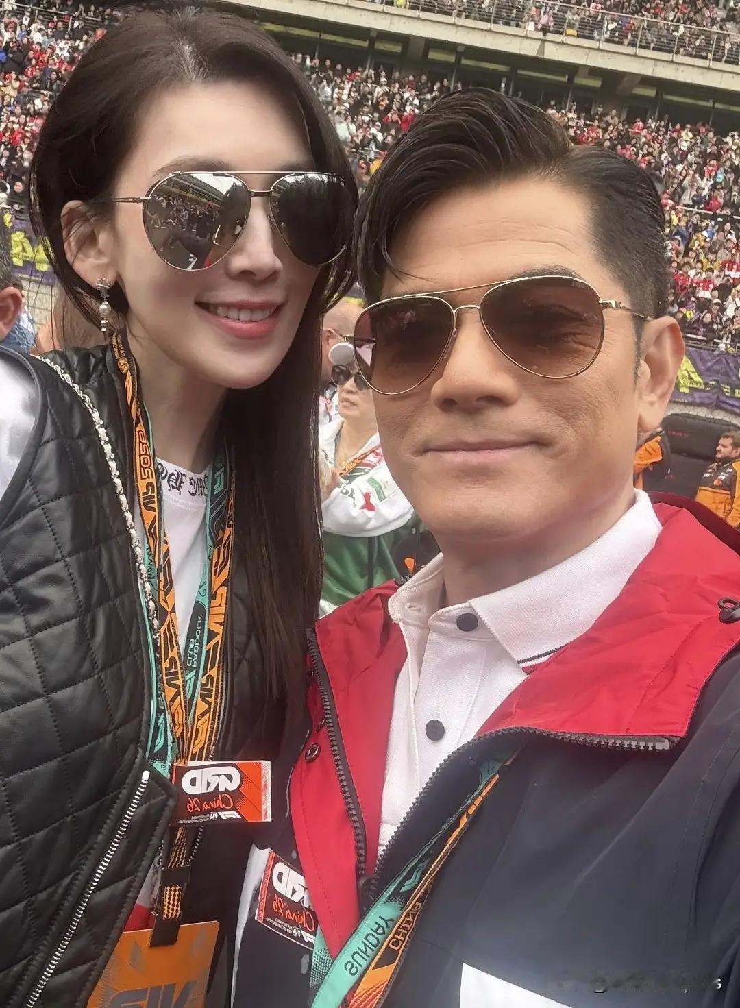 撒贝宁太低调了!同样都是带老婆去看 F1,撒贝宁几乎找不到人。 要不是看台上网友晒图,压根不知道他也带老婆去了。 看看林志颖老婆,与郭富城合影,第一眼看上去还以为方媛也来了,家里的娃都扔给自己爸妈了。 也有人吐槽,林太太没开美颜,就把郭富城的皱纹拍出来了。 估计天王也不在乎,自己就这颜值和状态,不开滤镜也只有 40 岁。 看看撒贝宁,和看看老婆孩子都来了,看这个位置比起明星的包厢还是差一个级别。 估计他是自己买的票,低调的央视名嘴,能与家人坐一起,带儿子体验速度与激情,这就足够了。 李白穿得也很普通,全程与孩子交流。好有爱的一个家。