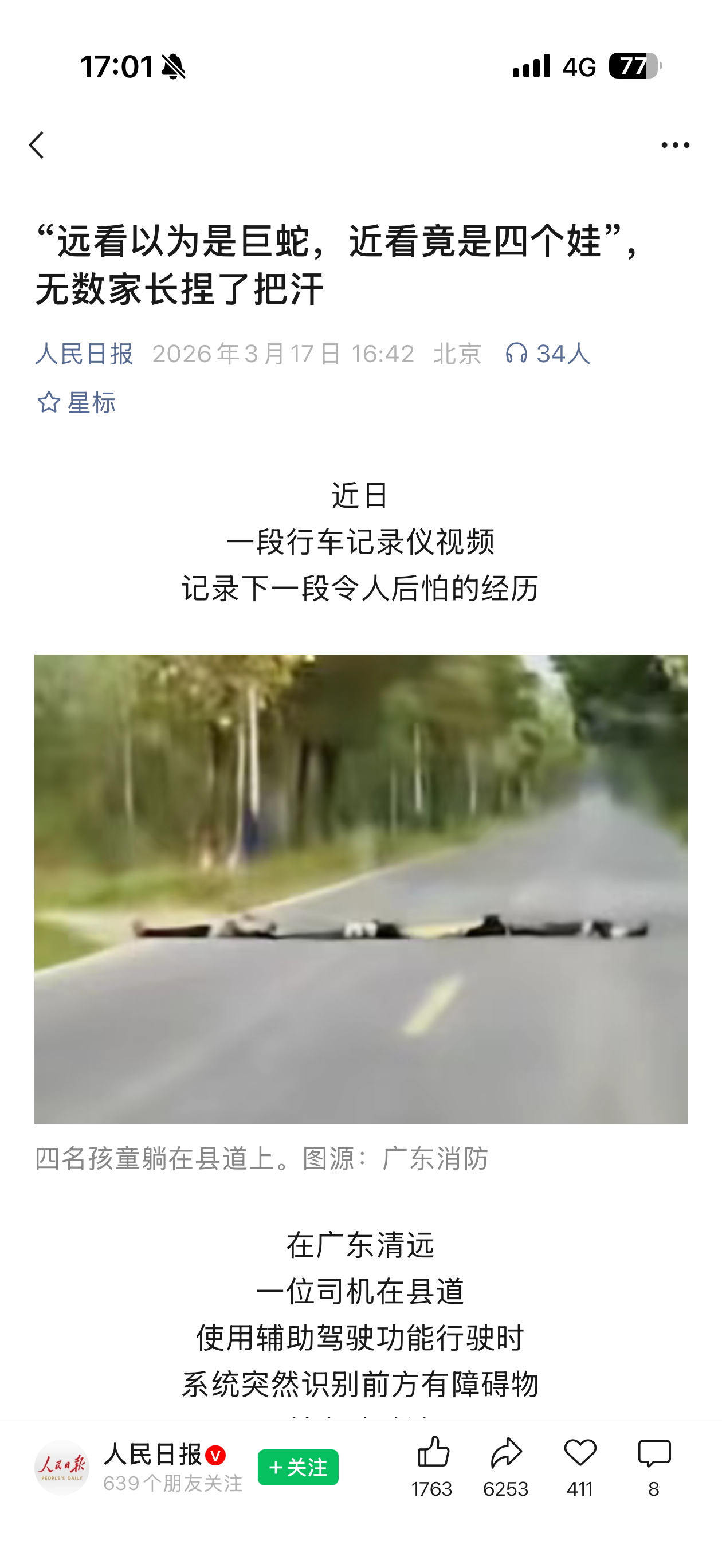 我遇到的四个小孩躺路上这个事件似乎比我几年前遇到的眼睛小被自动驾驶误判为睡觉影响力要更轰动全国,就在刚刚人民日报也发了