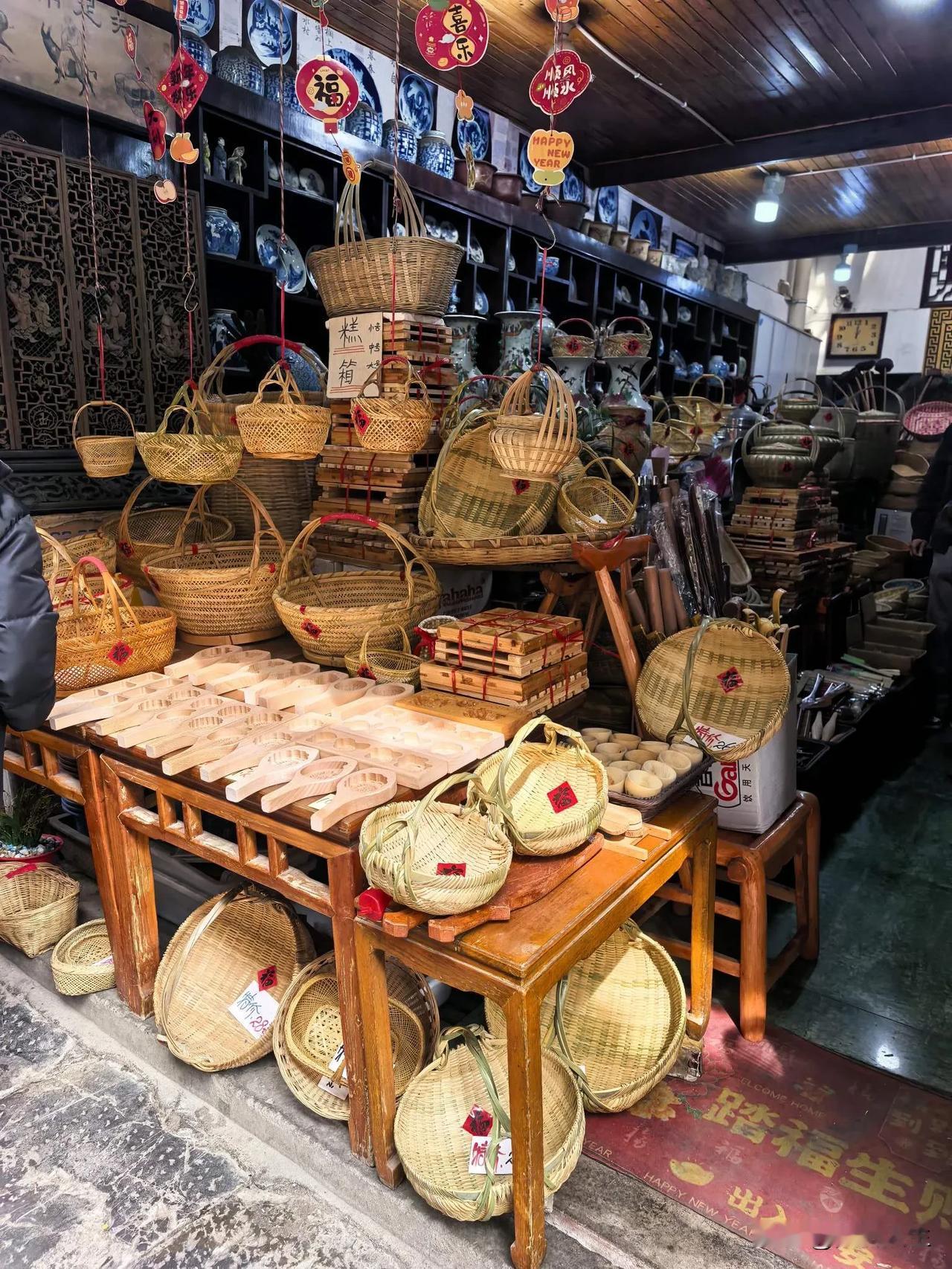逛老街,独爱那份指尖的匠心。竹编店里,形态各异的竹制品堆叠,带着草木的清香,每一道纹路都是手艺人的坚守;腊味铺前,红油浸透的鸭脚包、风干的板鸭挂满门楣,与红彤彤的干辣椒相映,这是独属于高淳的咸香年味。 不必追赶行程,踩着青石板慢慢走,摸一摸老建筑上的斑驳刻痕,买一袋本地的土特产,尝一口刚出锅的老街味道。 老街动人的风景,并非袭来的盛名,而是这街巷里,烟火与匠心并存的生机。