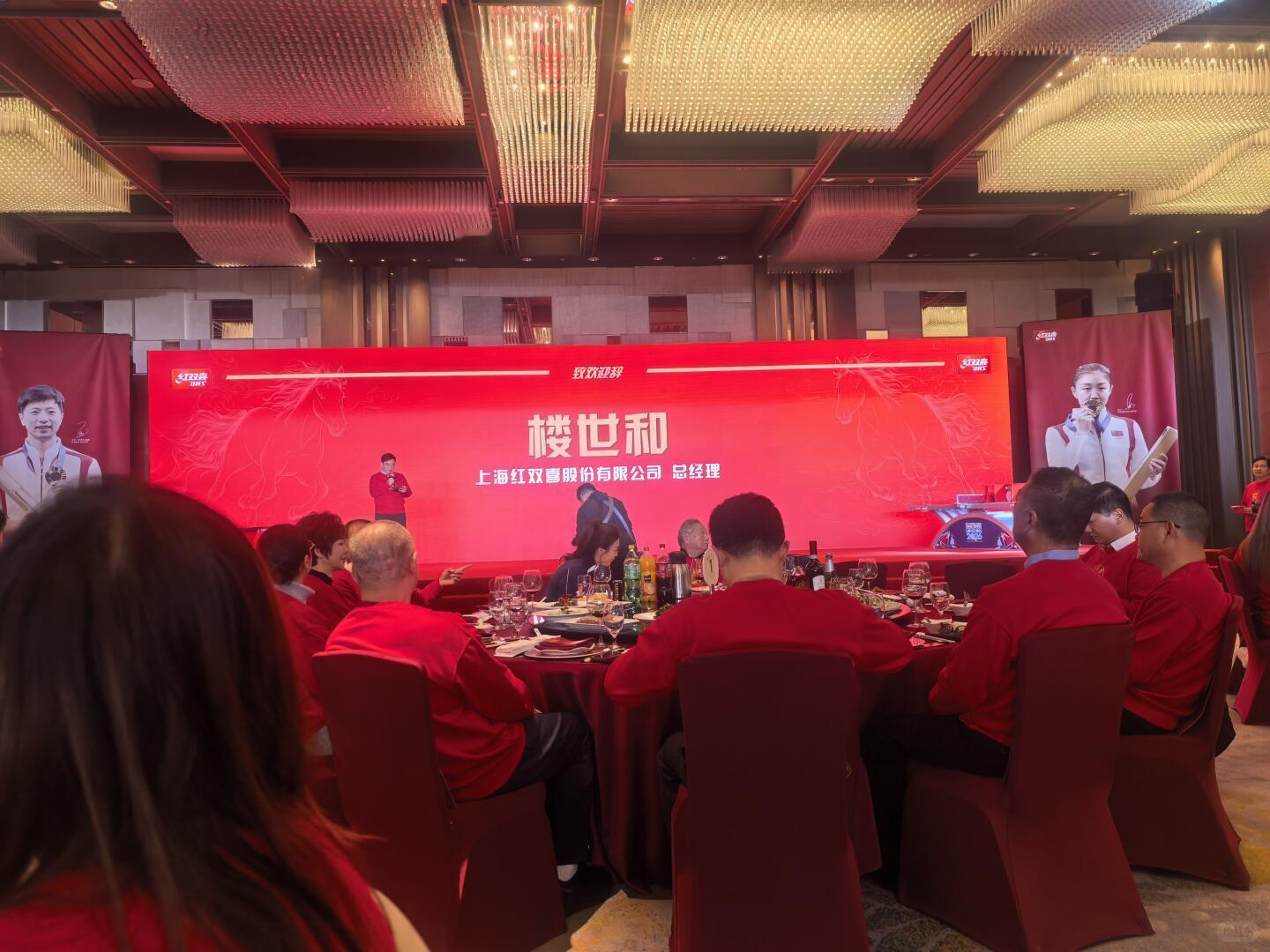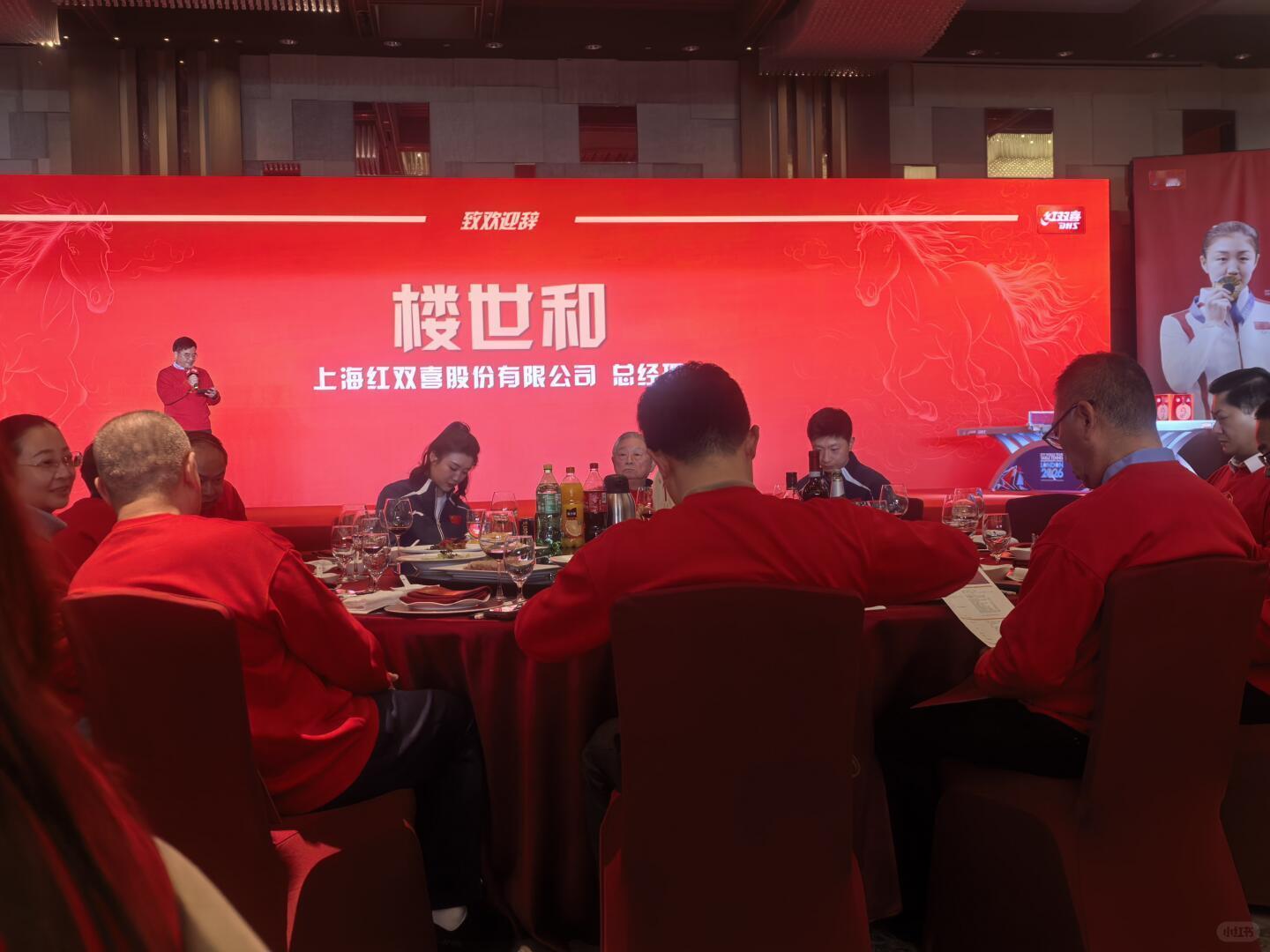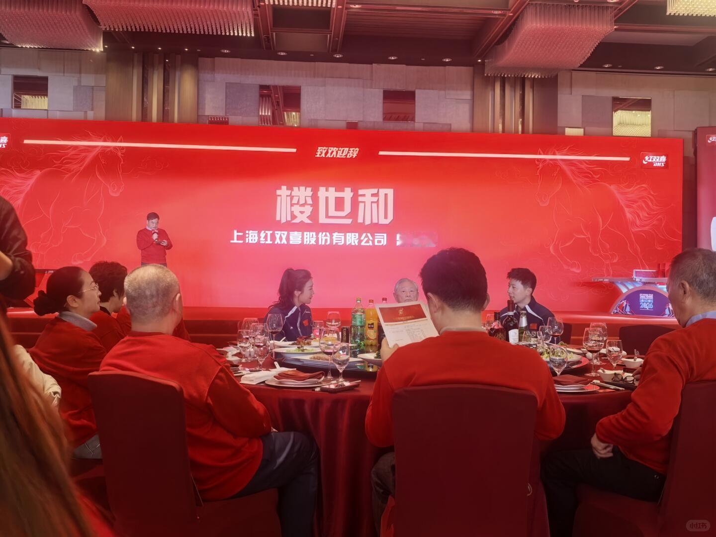 2026红双喜年会马龙就坐 应该是坐徐寅生和楼世和中间,楼世和上去发言了