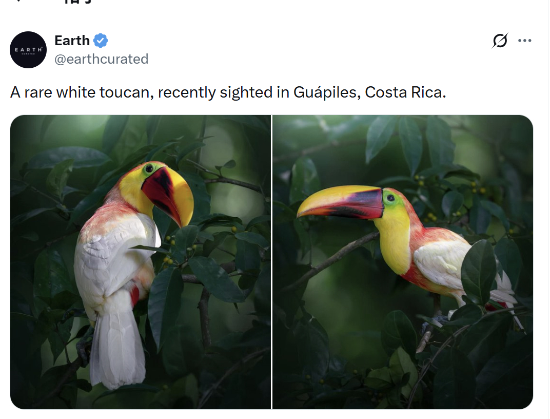 摄影师在哥斯达黎加拍到的一只颜色特殊的巨嘴鸟~~