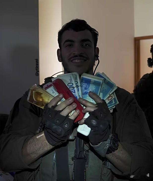 以色列军人的“战利品”,其实就是巴勒斯坦平民的血泪。这些照片看似是士兵炫耀“战利品”的摆拍,实则是以军在加沙犯下战争罪行的铁证在加沙地带,无数巴勒斯坦家庭正经历着战火的摧残,食物、水源、药品极度匮乏,数十万人流离失所。可就在这样的背景下,以军士兵却把从平民手中抢来的iPhone手机、大把现金、金表金戒当成“战功”展示,笑得一脸灿烂。要知道,国际法明确禁止掠夺平民财产,以军的行为就是赤裸裸的抢劫。这些手机、现金,本是平民的救命钱和生存物资,是孩子的学费,是老人的养老钱。以军士兵不仅对平民实施暴力,还搜刮财物,甚至连儿童的物品都不放过,这种行为彻底暴露了他们的残暴与贪婪。这种摆拍不仅是对人道主义的践踏,更是对苦难的漠视。所谓的“战利品”,每一件都沾着平民的血泪,每一件都在控诉以军在加沙的暴行,撕开了他们所谓“文明之师”的虚伪面具。