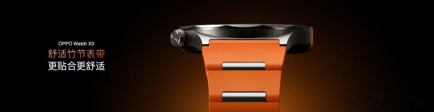 OPPO Watch X3全钛先锋,健康有数时尚优雅的 OPPO Watch X3,以十二道工艺、数十小时精工打磨,打造十二边形设计,尽显钛金属细腻光泽。钛金属外壳坚固防护,轻松应对极端户外环境,既保留了高端腕表的精致,又做到了超乎想象的轻薄,全天无感、不卡袖口。搭配舒适竹节表带,金属质感与氟橡胶亲肤舒适相融,腕表气质与运动感兼备。表盘覆盖高奢蓝宝石水晶玻璃,坚韧通透;3000 尼特峰值亮度,户外强光依然清晰可见。