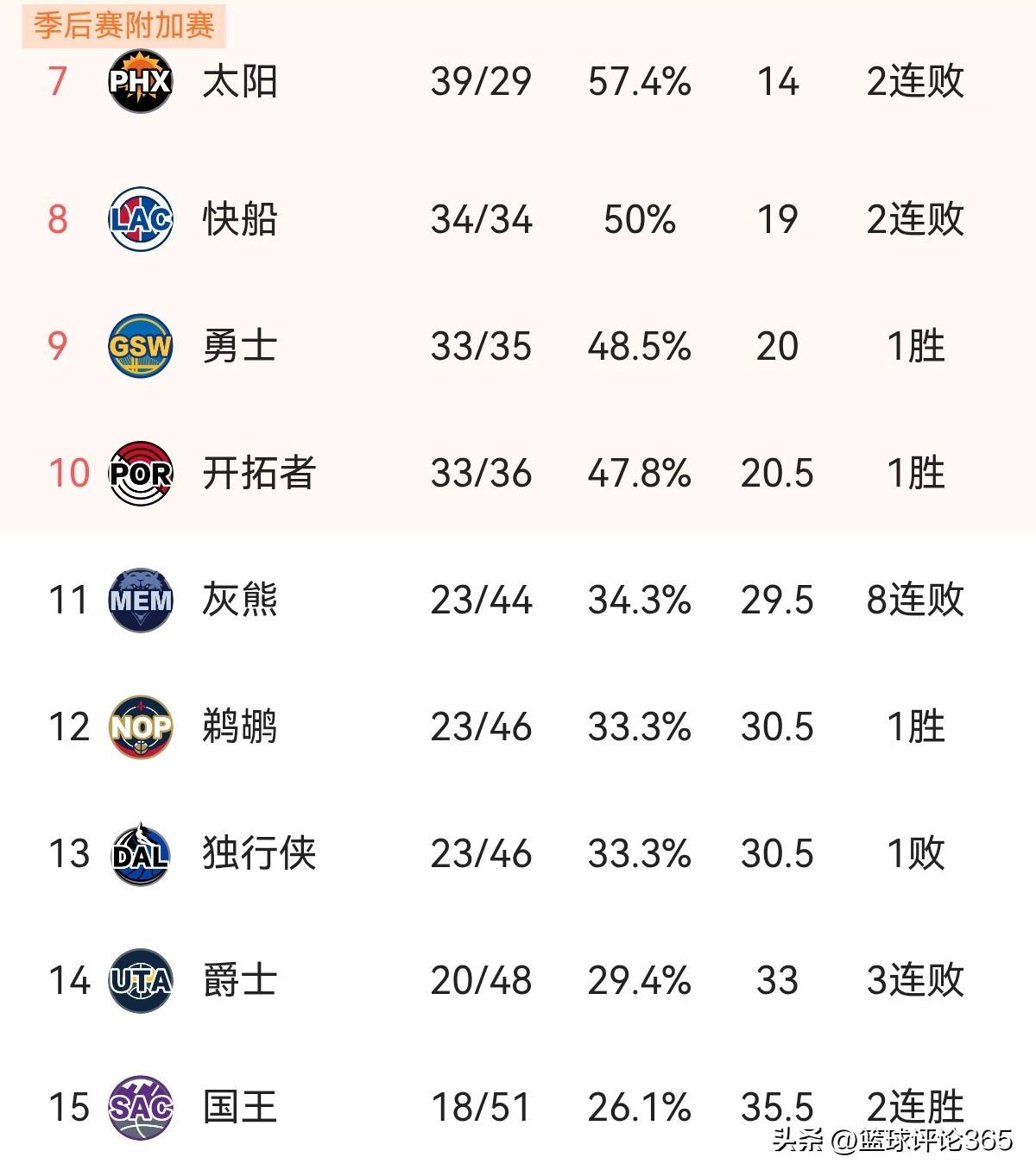 西部排名榜提前白热化:前2名提前锁定,湖人6连胜挤掉火箭,5-6名并列,太阳仍存一丝机会 北京时间3月17日,NBA常规赛激战多场,西部排名格局再度发生微妙变化。随着赛季进入尾声,季后赛卡位战愈发白热化。 首先看已经毫无悬念的顶端:雷霆以53胜15负的战绩豪取8连胜,胜率高达77.9%,稳坐西部头把交椅。马刺50胜18负紧随其后,同样提前锁定季后赛资格。这两支球队本赛季表现强势,基本已经宣告“锁定前二”,后续赛程只需保持状态即可。 最大的看点集中在第三到第六名的混战。湖人今日100-92力克火箭,豪取6连胜,战绩来到43胜25负,凭借这波强势表现直接反超火箭,升至西部第三!火箭41胜26负跌至第四,但仅领先第五、六名的掘金和森林狼0.5个胜场。这三支球队战绩极为接近,随时可能发生排名互换,谁能在最后阶段稳住阵脚,直接晋级季后赛,仍是未知数。 再看附加赛区域,太阳39胜29负暂列第七,但今日112-120不敌凯尔特人,遭遇两连败,领先第八名快船的优势有所缩水。快船34胜34负刚好五成胜率,但同样遭遇两连败,状态堪忧。勇士33胜35负凭借一场胜利紧追不舍,开拓者33胜36负也在虎视眈眈。 从第11到第15名,灰熊、鹈鹕、独行侠、爵士、国王基本已告别季后赛希望,只能为荣誉而战。总体来看,西部格局呈现“两头清晰、中间混乱”的局面:雷霆马刺锁定前二,后五名基本出局,但第三到第十名的8支球队仍在为直接晋级或附加赛资格拼杀。尤其是太阳,虽然跌入附加赛区,但距离第六仅差2个胜场,理论上仍有机会冲进前六,避开附加赛的残酷厮杀。最后10余场比赛,每一场都将是决战。