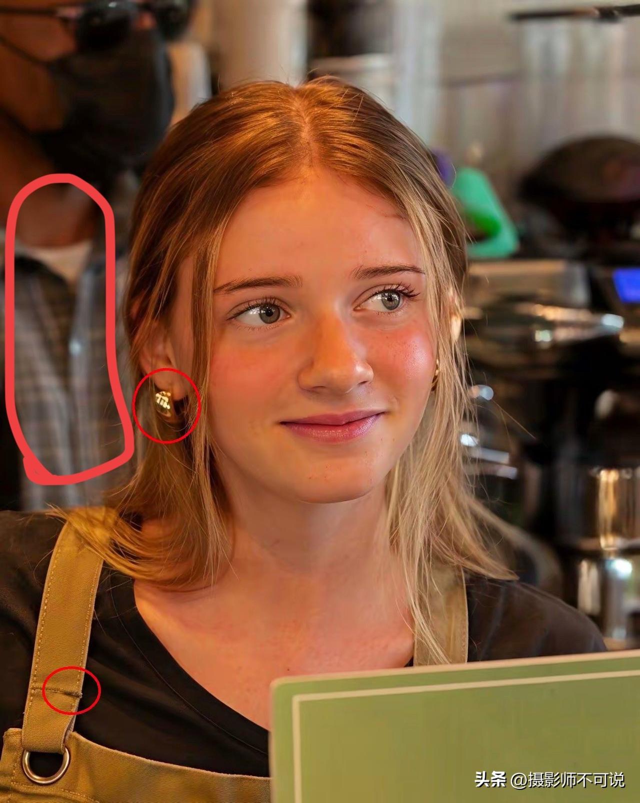只能说假的就是假的,Ai已经尽力了!这两天闹得沸沸扬扬的Ai视频造假某某某胡真人的讨论逐渐水落石出了。这张截图暴露Ai是最彻底的,足足有四处之多。比如该女孩背后那位戴口罩的哥们儿,衬衫的面料变了,一张是灰色片色衬衫,而另一张则是灰格子衬衫,这个不用多说了吧,妥妥的一眼假!至于耳环、围裙背带褶皱、围裙口袋高度这些都是被网友们早就看穿了的。所以说,不管现在Ai有多牛,但在视频或者套图方面几乎不可能做到百分百一致。所以,想用Ai造价穿帮是必须的!