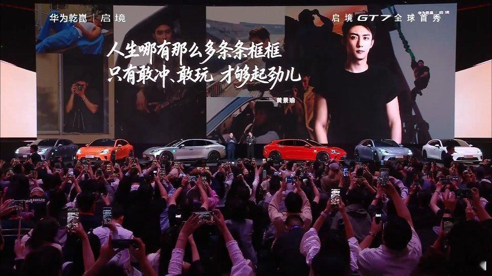 华为和广汽合作的全新品牌——启境首款新车「启境GT7」代言人是黄景瑜,人车气质挺搭的,就是在台上聊天的环节设计得太尬了,提词器是不是字太小啊,怎么两个人念词都有点费劲啊启境GT7首发十大新一代黑科技启境汽车品牌发布会暨GT7首秀