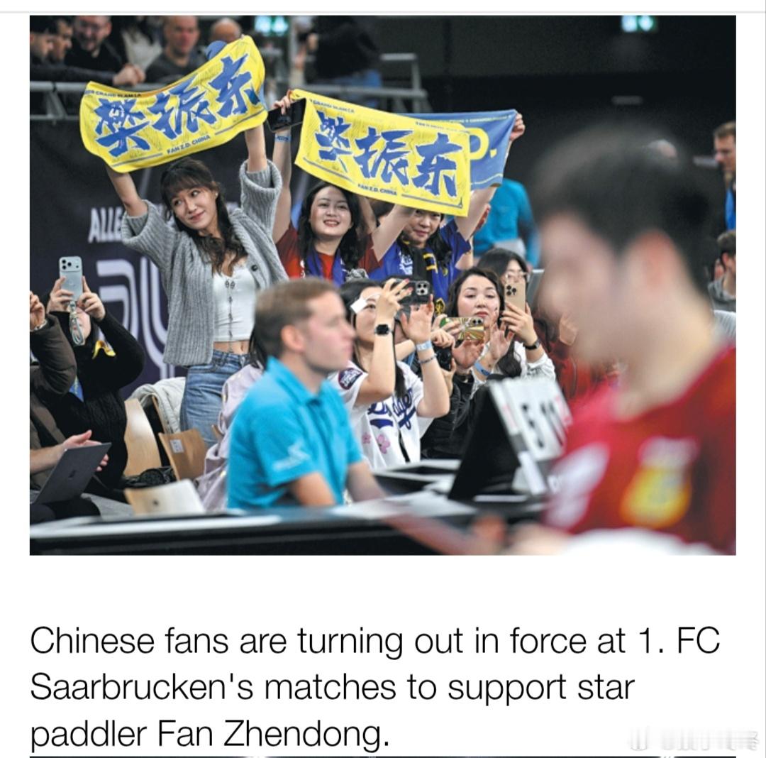 中国球迷纷纷前往萨尔布吕肯足球俱乐部的比赛现场,大力支持乒乓球明星樊振东。