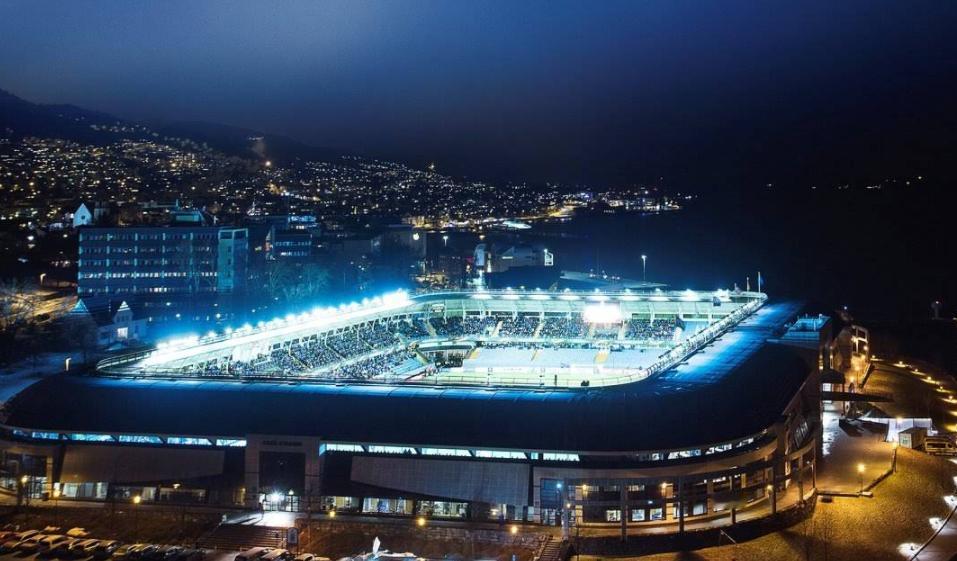 挪威莫尔德的阿克球场,梦幻一般的足球场,能同时看见雪山和大海。算得上是地球上最美的足球场之一了。但从卫星地图上看,这个球场真的不算太惊艳,但是搭配上雪山,大海和日落,就变得浪漫起来了。真想有一天去旅游看看。