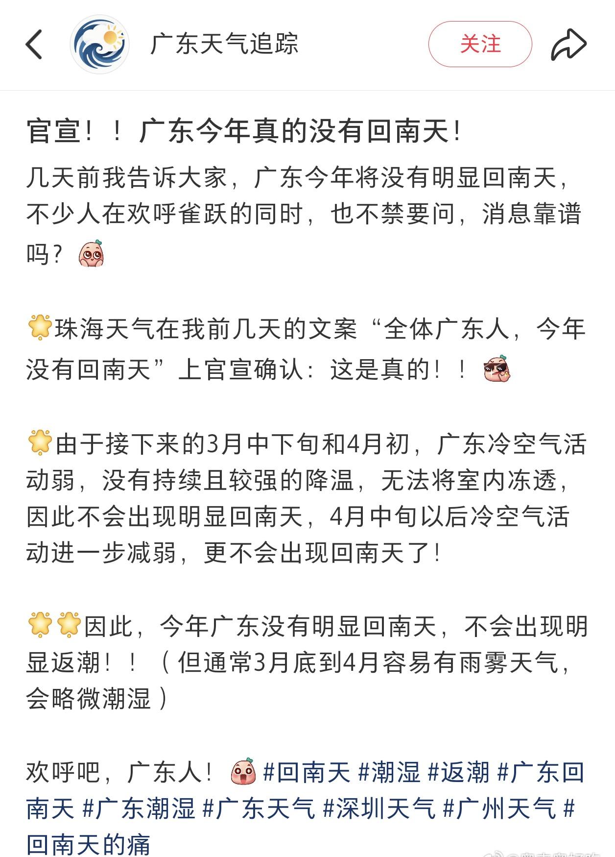 29031 一时间不知道是好消息还是坏消息 好消息:没有明显回南天 坏消息:夏天更热了