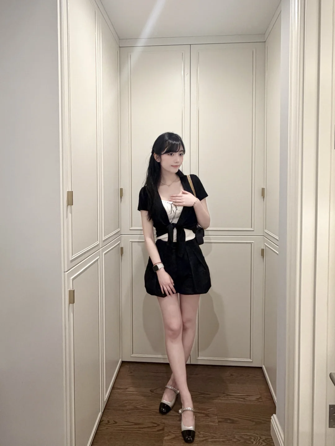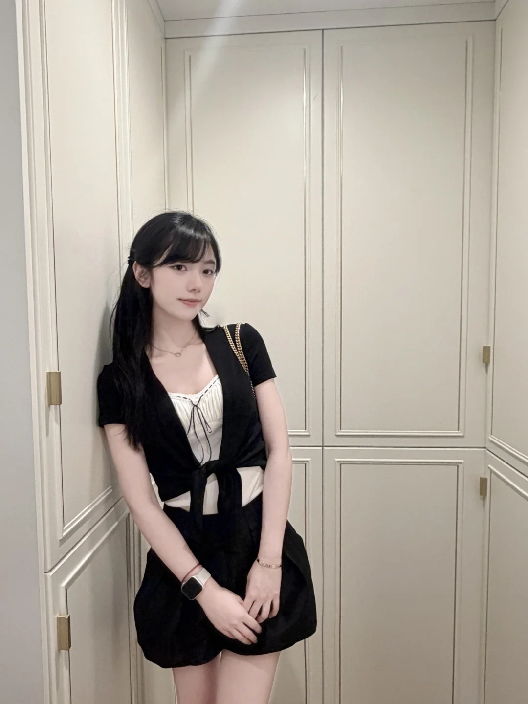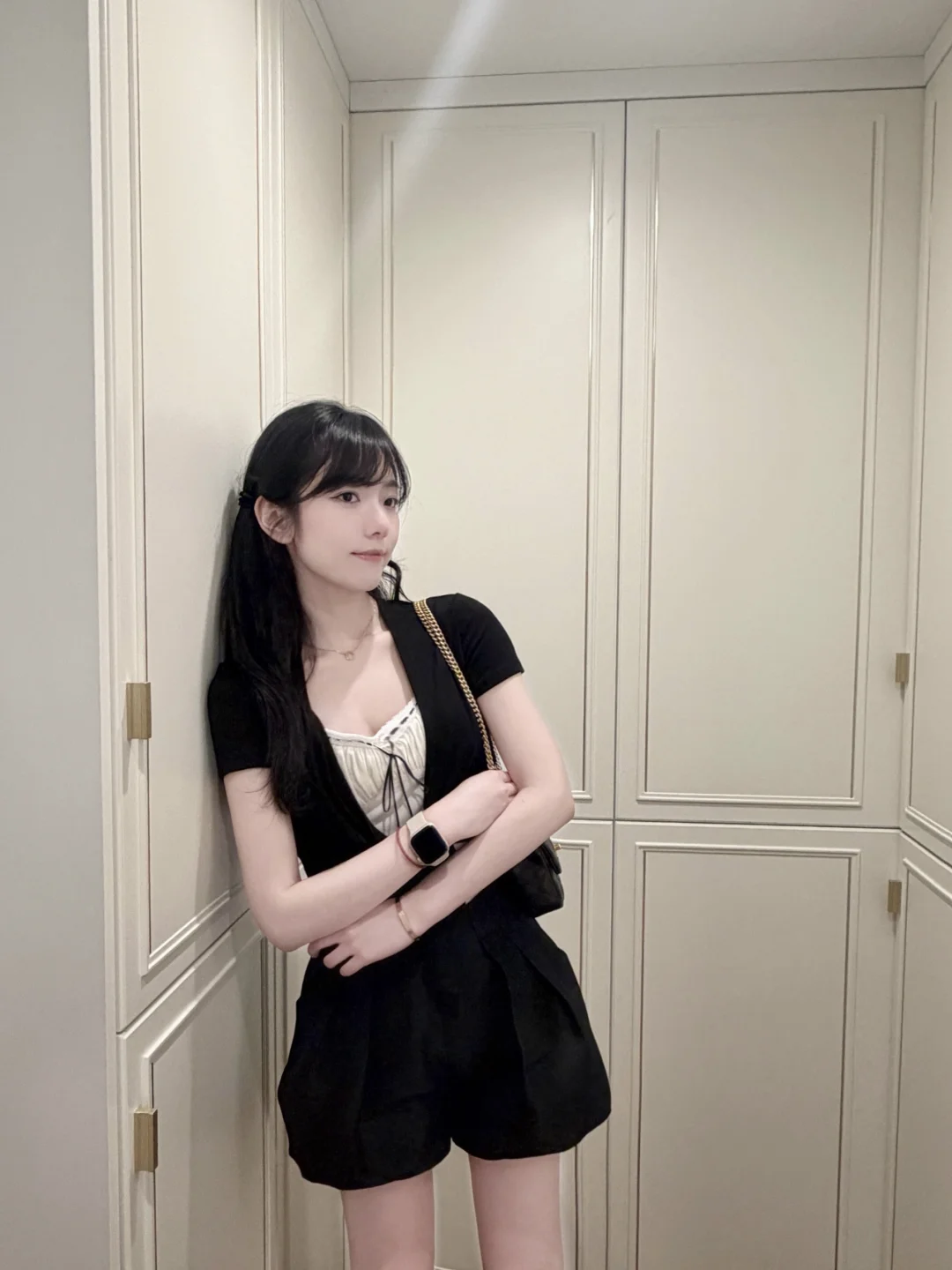今天尝试了垂耳兔发型,搭配这一身黑白套装,显得乖乖的 好喜欢~