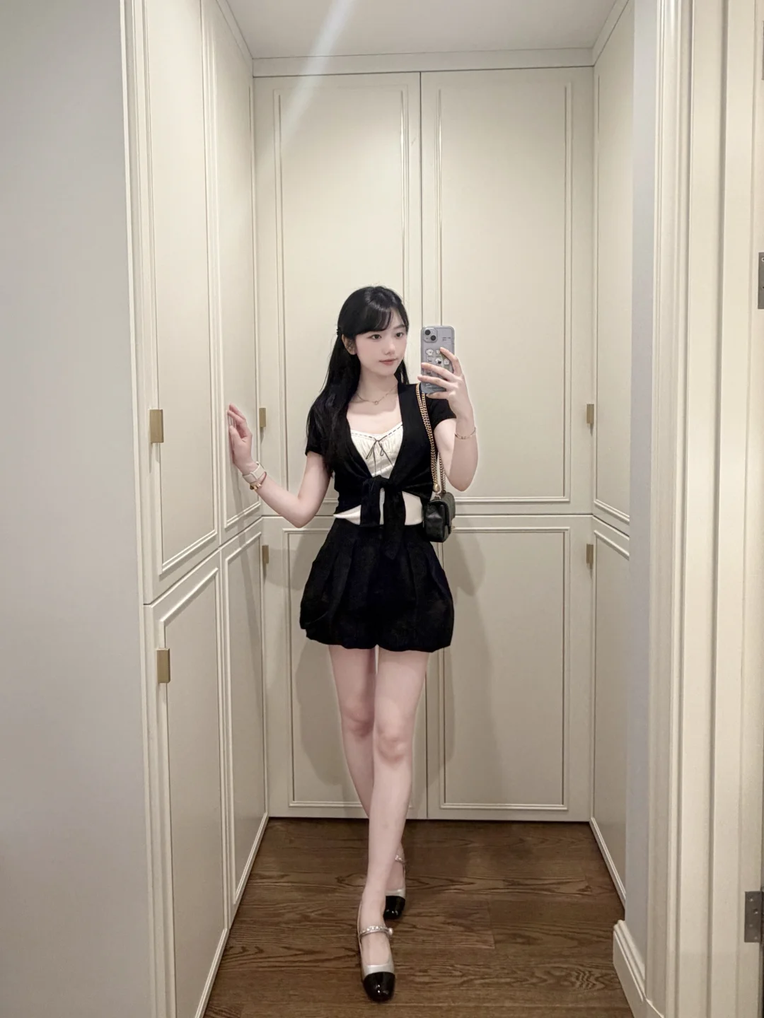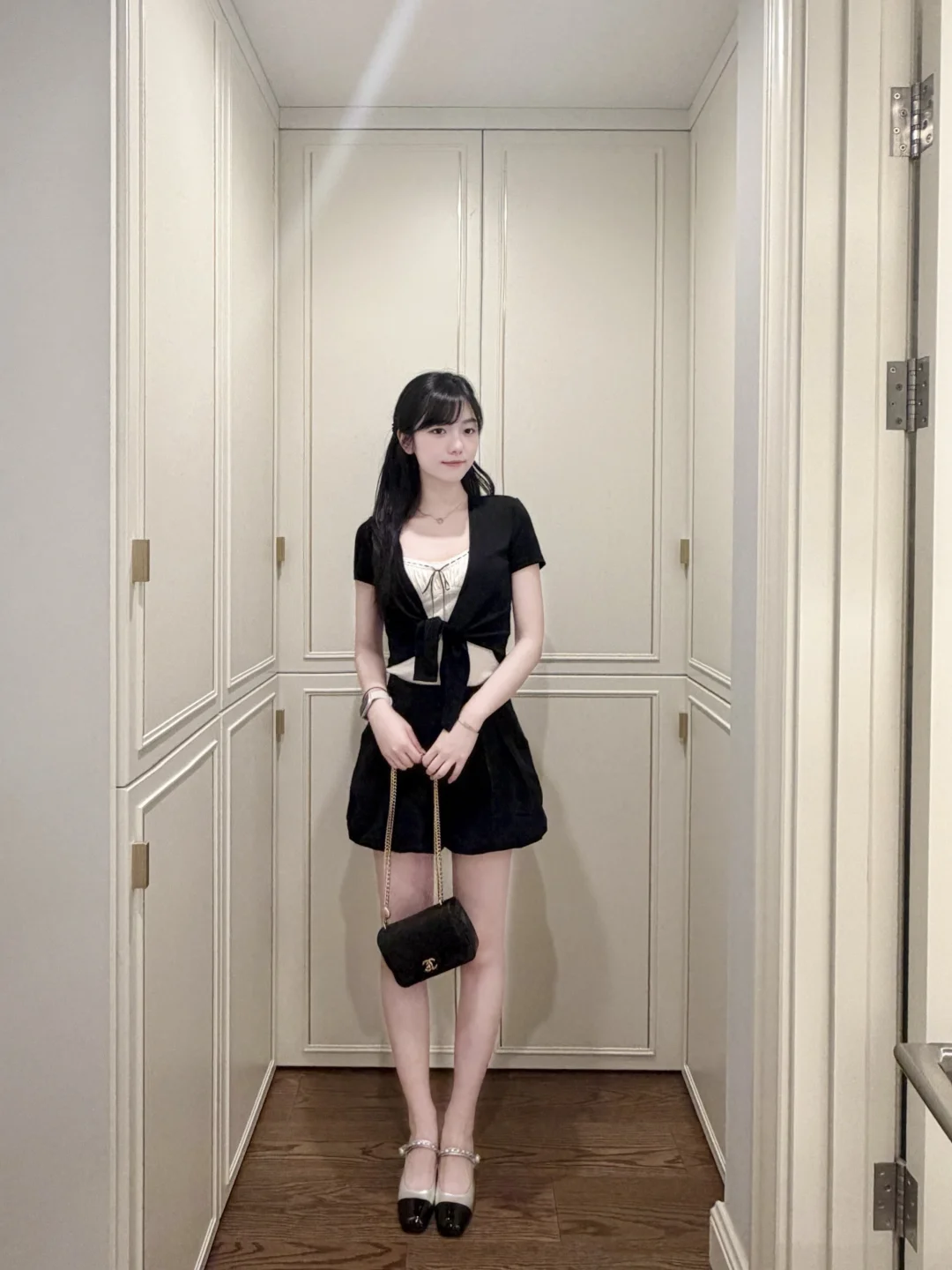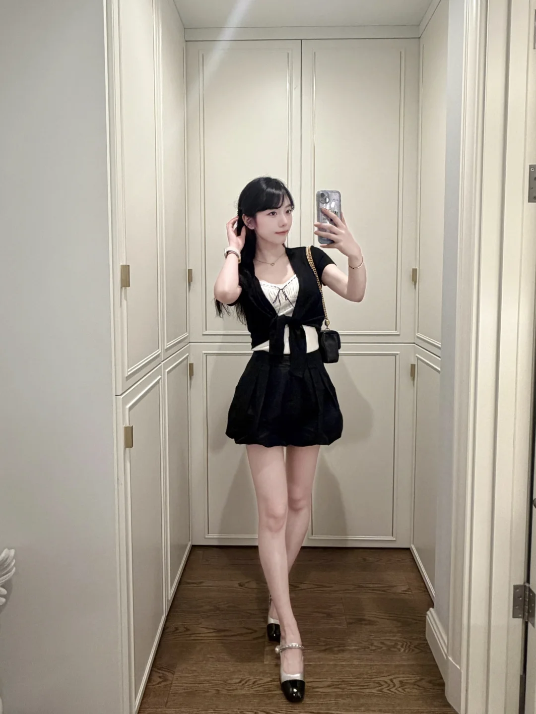 今天尝试了垂耳兔发型,搭配这一身黑白套装,显得乖乖的 好喜欢~