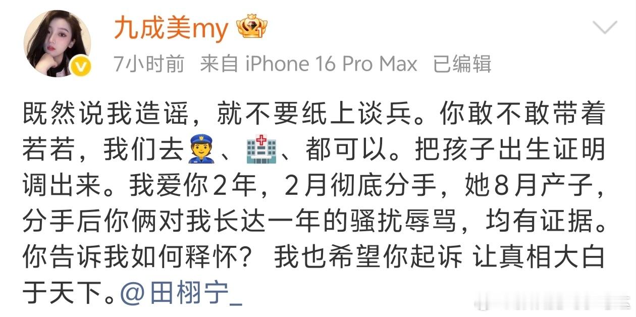 继田栩宁工作室前几天针对九成美事件进行名誉维权后,九成美继续发微博分享和田栩宁在