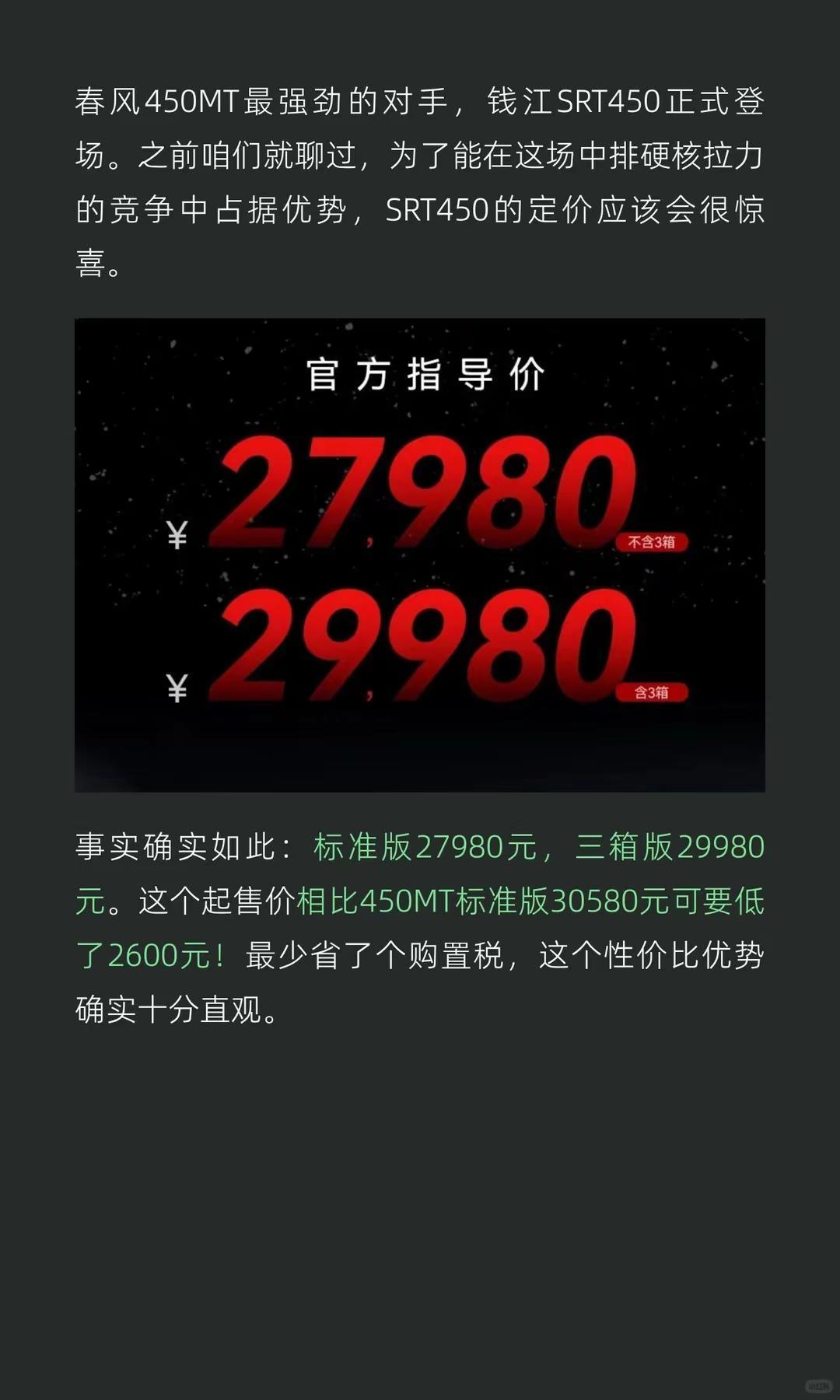 27980元起!钱江SRT450上市。27980元起!硬刚450MT!钱江SRT