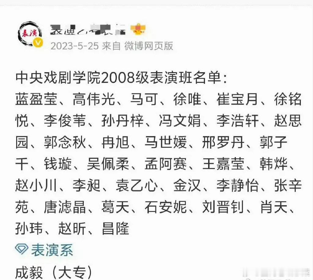 成是毅中戏表演系大专?那ie每次还营销自己是中戏本科
