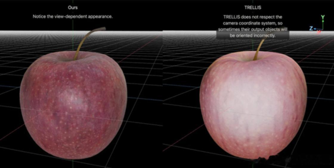 在官方对比测试中,LiTo模型严格遵循摄像机坐标系,解决了同类模型生成物体朝向错误的问题,其多视角光影一致性指标较当前最优的TRELLIS模型提升约37%。(快科技)