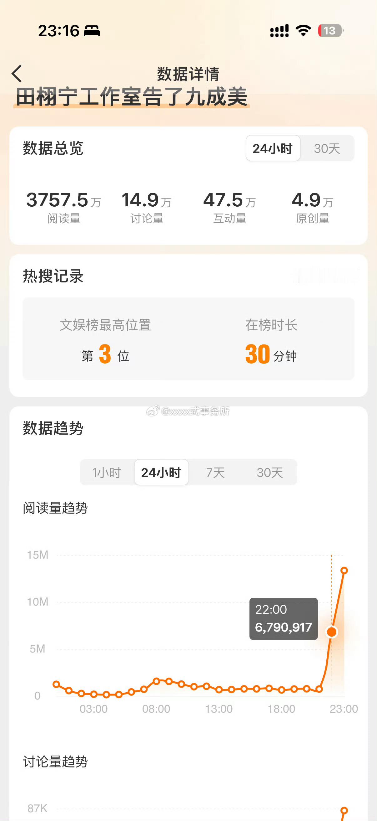 田栩宁工作室告了九成美ct 阅读量前后对比