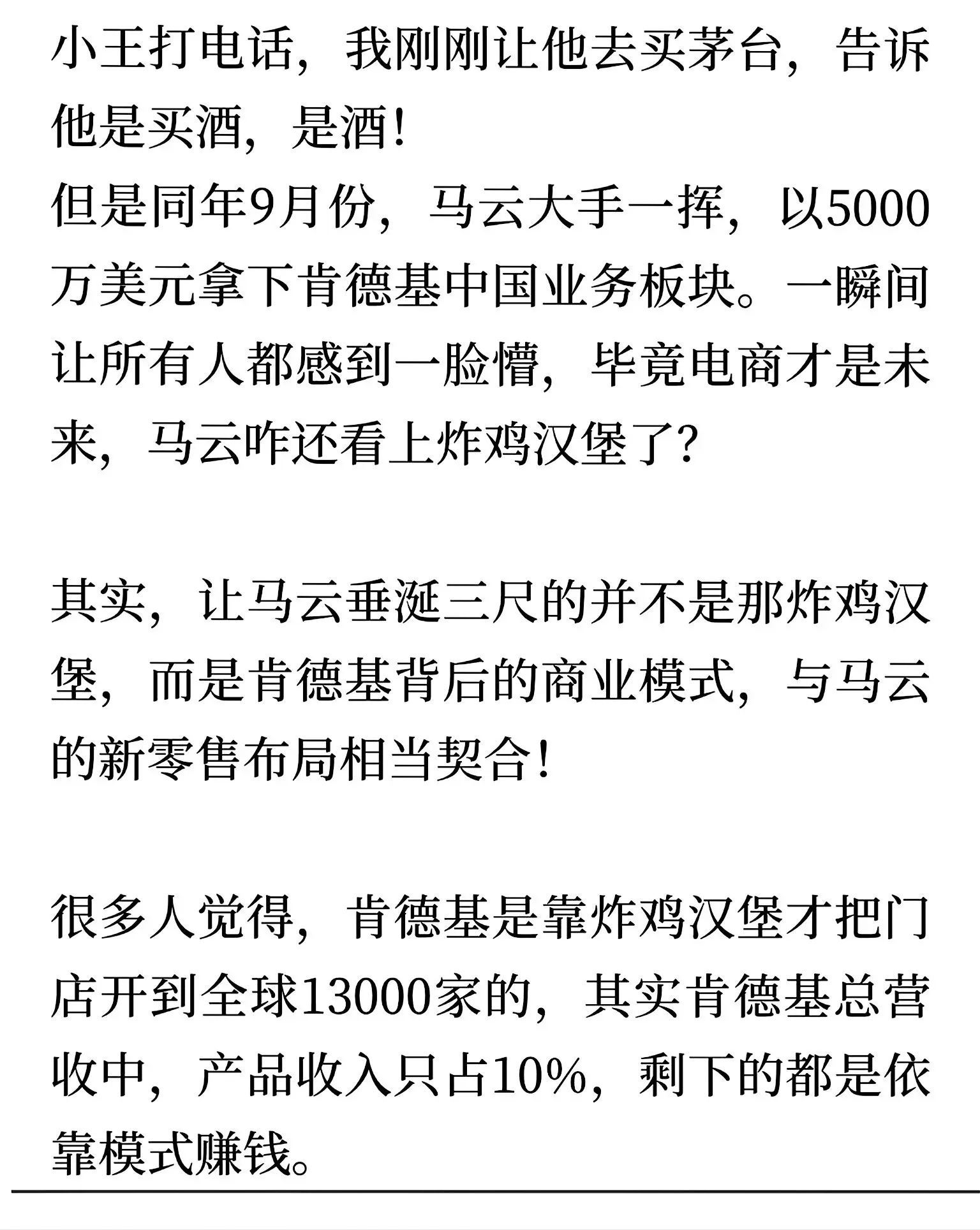 2016年,网上流传着一段有趣的段子:马云让秘书买肯德基,一小时后秘书...