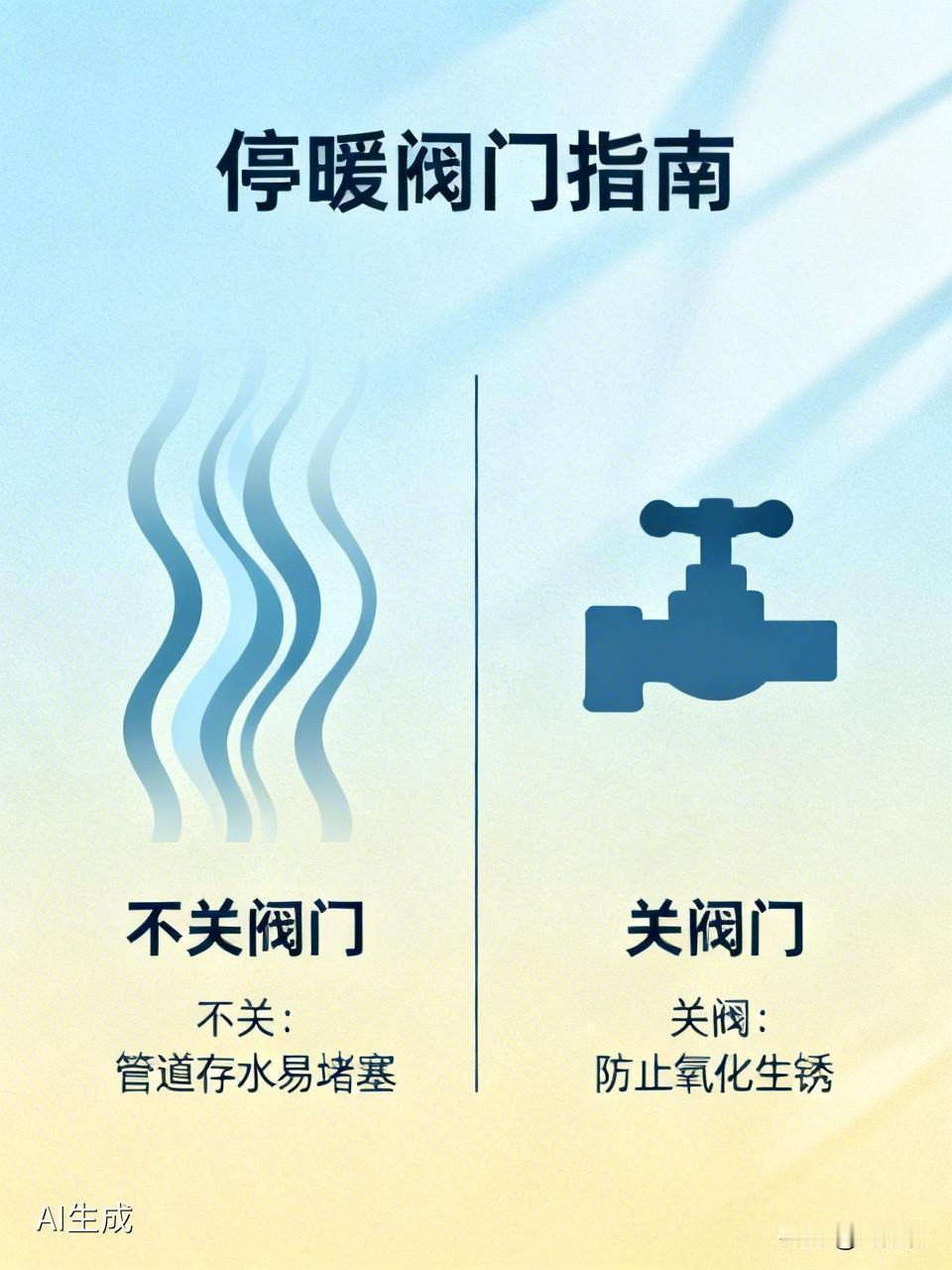 停暖后家里的阀门要不要关 停暖后家里的阀门要不要关,这让很多人犯了难。实际上,存在两种不同观点。 一种观点是不要关。暖气系统停暖后,管道和阀门里仍有水。关闭阀门,水滞留易形成积水沉淀,增加阀门锈蚀老化风险,还会使管道内水不流动,导致结垢堵塞,影响下次采暖效果。 另一种观点是建议关。集中供暖停暖后,管网可能检修排水,若不关阀门,空气进入管道,内壁易氧化生锈,杂质会堵塞暖气片。关闭阀门可让暖气片和管道满水保养,减缓腐蚀,还能降低漏水风险。我更倾向于关闭阀门,毕竟能避免不少麻烦。