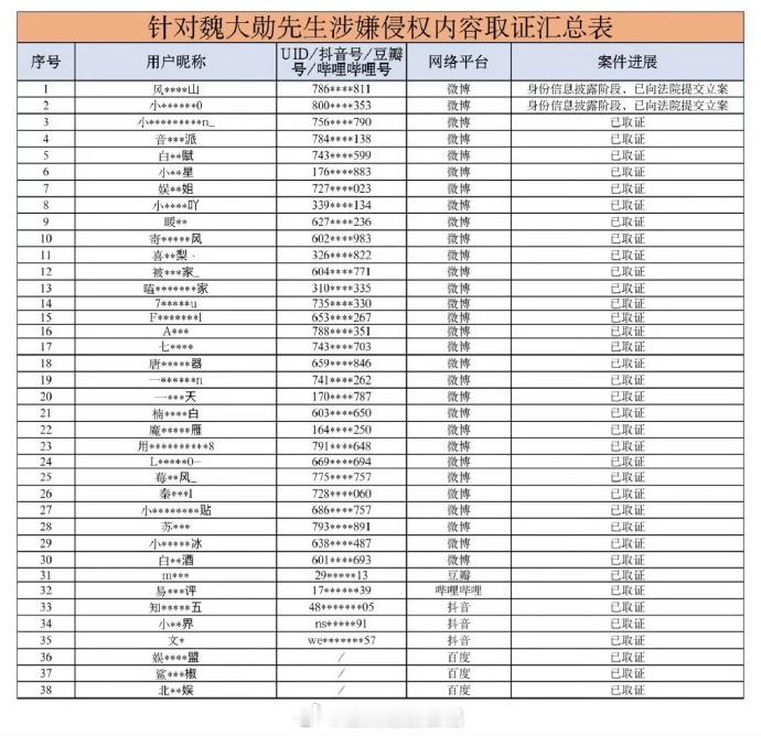 秦岚魏大勋告黑,互告粉丝 好长的名单。