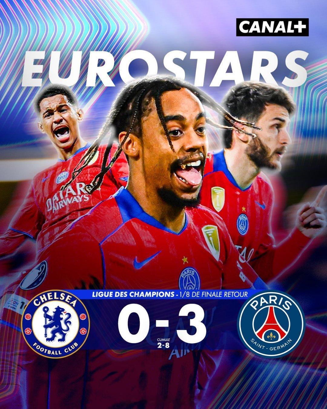 切尔西0比3巴黎圣日耳曼巴黎圣日耳曼 比赛一开始很快就领先,今晚的比赛晋级几乎没有悬念!