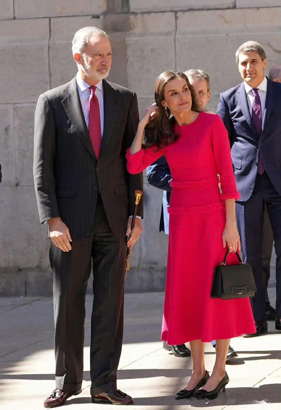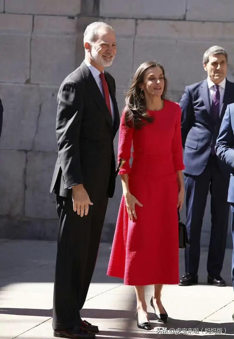 国王夫妇访问哈恩,庆祝该城市建城1200周年!王后的红裙子就是喜庆,去年11月来