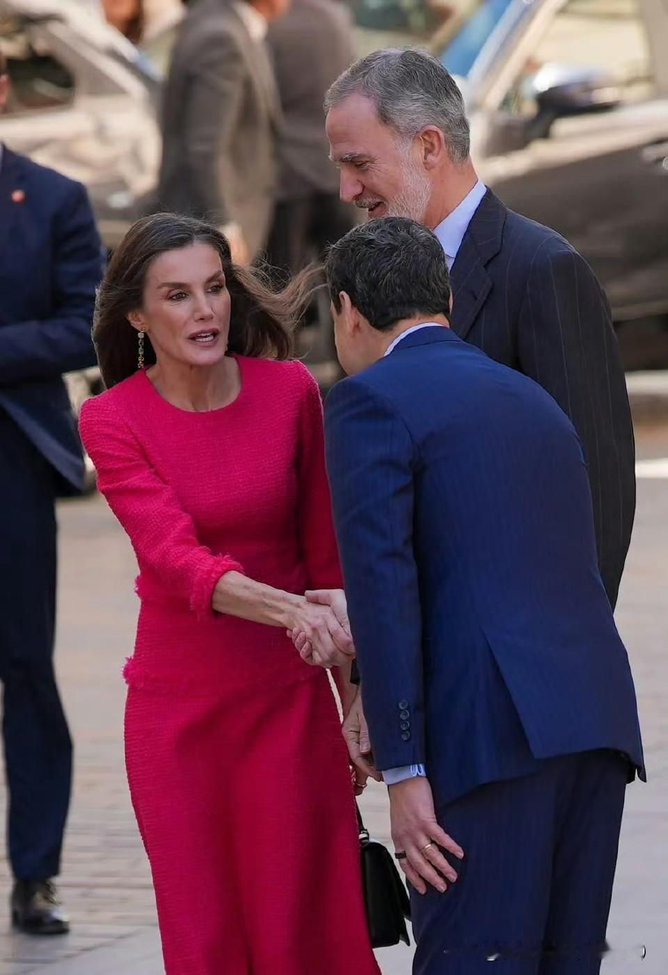 国王夫妇访问哈恩,庆祝该城市建城1200周年!王后的红裙子就是喜庆,去年11月来中国的时候在成都穿过!