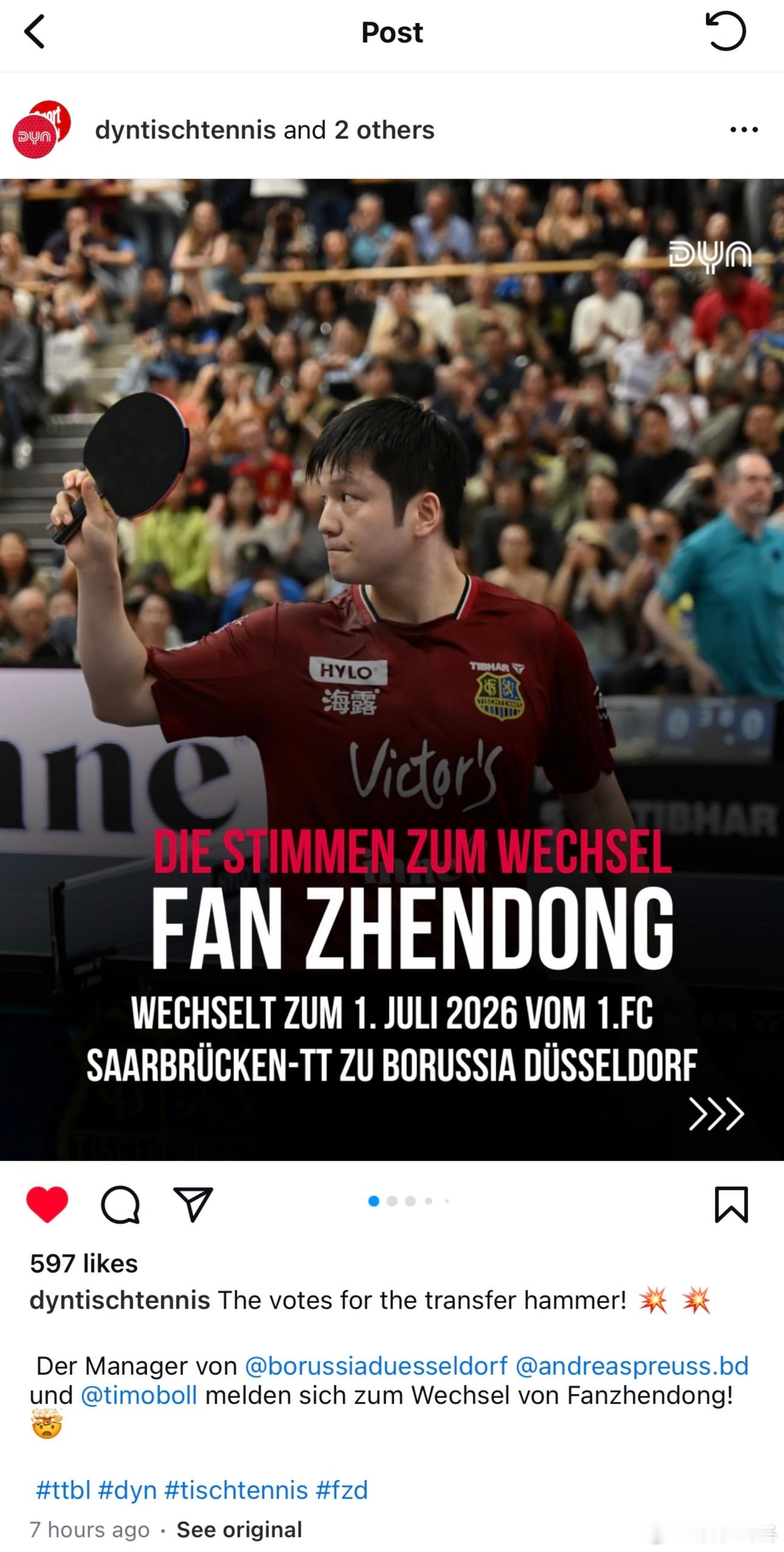 波尔:“他转会到杜塞尔多夫是一个合乎逻辑的步骤。因为这里是乒乓球运动的核心地带。”