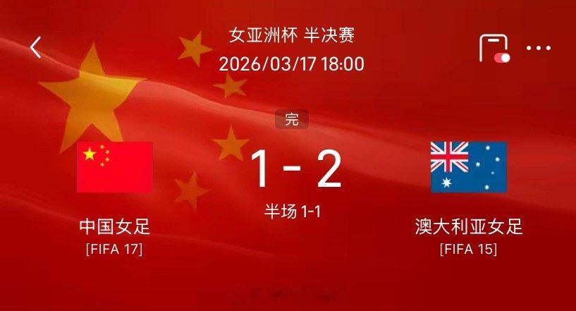 在2026年女足亚洲杯半决赛中,中国女足以1:2惜败于东道主澳大利亚队,遗憾止步四强。本场比赛,中国女足在核心球员王霜停赛、体能储备处于劣势的情况下,展现了顽强的拼搏精神。
