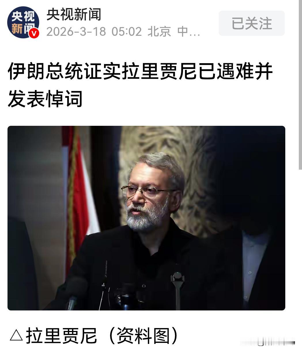 战火直逼伊朗本土,中东局势彻底失控!以军深夜空袭德黑兰,精准猎杀伊朗核心高官拉里贾尼,其子与随行人员一同殒命,内塔尼亚胡高调认领战果,还扬言后续还有更多惊喜。 伊朗总统凌晨沉痛证实,称这是无法弥补的国殇,誓言坚守抵抗路线绝不退让。以色列数月跟踪、跨境斩首,公然践踏主权红线,把地区安全彻底踩在脚下。 这场明目张胆的暗杀,已然撕开中东最后的和平面纱,复仇之火一触即发,全面冲突近在眼前! 战争是否会升级?伊朗又会怎样报复?我们静待观察。