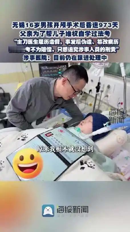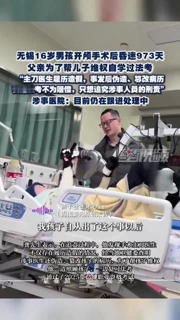 江苏无锡的龚先生正承受着常人难以想象的煎熬。自家孩子在2023年7月19日接受脑部手术后便一直处于昏迷状态,漫长的时光已经悄然走过973天。谁能体会家长日夜守护的心酸,谁又能接受一场手术带来的无尽伤痛。 (个人观点仅供参考,无任何不良引导) 龚先生踏上艰难的维权道路。调查过程接连曝出触目惊心的问题。主刀医生存在履历造假行为。当地卫健委核实确认医生存在伪造篡改病历的行为。本应真实准确的医疗资料沦为掩盖问题的手段。这样的诊疗行为如何对得起患者的托付,如何配得上白衣天使的称号。 为父则强,绝境亦能破局。龚先生寸步不离照料昏迷的孩子。挤出所有空闲时间埋头学习法律知识。放弃休息娱乐,熬过无数个不眠之夜。凭借坚韧不拔的毅力成功通过2025年法律职业资格考试。从一无所知的普通家长变成懂法维权的战士。每一步前行都藏着数不尽的汗水与泪水。 无锡市儿童医院针对此事作出回应。事件明确属于医疗事故范畴。具体后续处理工作仍在稳步推进中。父爱如山,可抵岁月漫长。法理昭彰,可护世间公道。龚先生用行动诠释父爱的伟大,用坚持守护孩子的权益。医疗行业需严守职业底线,监管部门需强化监督力度。唯有真相不被掩盖,唯有责任落到实处,才能守护万千家庭的健康与幸福。