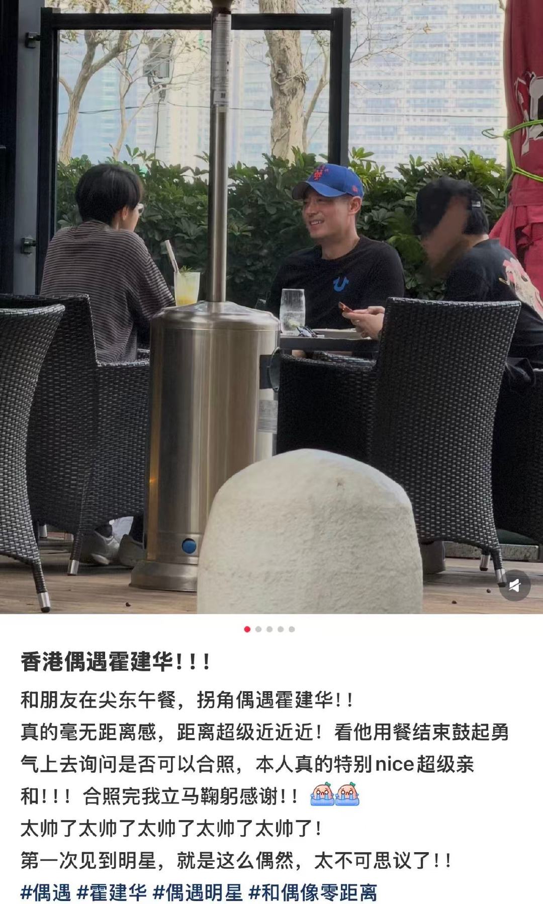 香港街头偶遇霍建华偶遇霍建华还合照了 3月17日晚,网友分享在香港街头转角偶遇霍