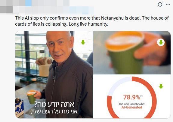 荒诞闹剧!内塔尼亚胡被逼数手指自证,AI谣言搅乱中东战局。 3月15日,以色列总理内塔尼亚胡一场离谱的“数手指辟谣”,引爆全球舆论,看似滑稽的举动背后,是中东战场愈演愈烈的舆论乱局,更是AI时代谣言的致命杀伤力,这场风波的发酵,全程紧扣中东紧张局势,每一步都戳中舆论痛点。 风波源头要追溯到2月28日,美以联手发动对伊朗军事打击后,伊朗火速反击,发射数百枚导弹、无人机回击以色列。此后内塔尼亚胡连续数日缺席公开活动与军方会议,“遇袭身亡”的传闻迅速在社交平台疯传,为后续谣言埋下伏笔。 3月12日,内塔尼亚胡召开视频发布会试图破谣,却因拍摄光影、角度形成视觉错觉,单帧画面被截取后出现“疑似六指”,“AI替身、总理已死”的说法彻底失控。 即便路透社等权威媒体证实视频真实,依旧无法平息质疑,甚至AI鉴定工具还给出78.9%的造假概率,网友又揪出咖啡液面、衣物细节等疑点,谣言越传越烈。 迫于压力,内塔尼亚胡发布咖啡馆高清视频,主动伸手展示手指自证清白,同步多平台发声反驳伊朗散播的死讯。 可这场直白的自证并未奏效,舆论争议持续发酵。 这场闹剧早已脱离谣言本身,成为中东对峙的缩影,也让世人看清,现代战场中,虚假舆论的破坏力丝毫不输炮火。