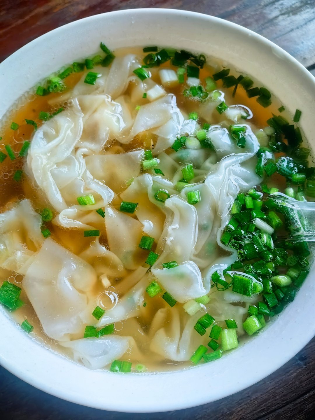 *在路上*纸皮馄饨,哈哈,确实薄,没馅儿,但味儿不错...茶鸡蛋3个,个个鸭蛋大
