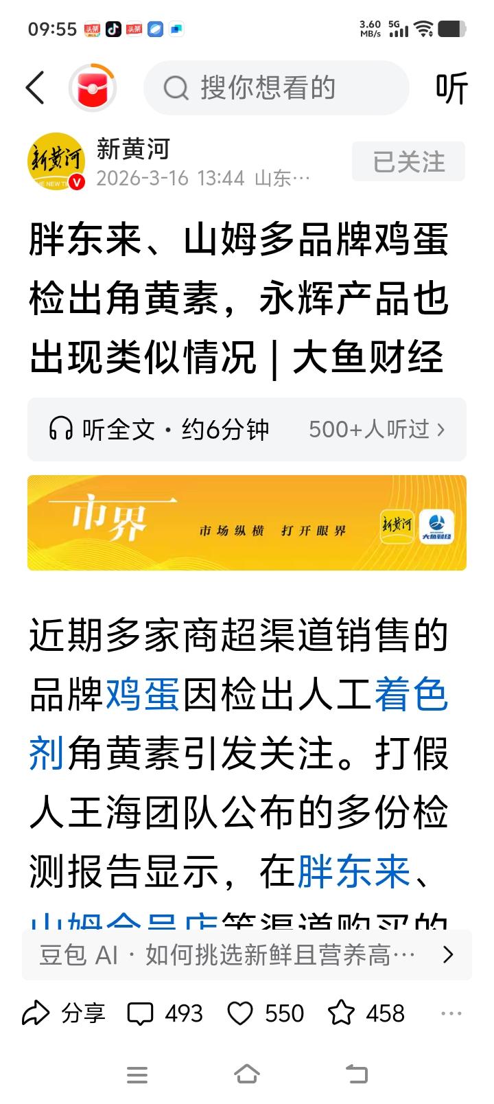 关于鸡蛋中含有角黄素问题,相关人员各持己见! 王海团队认为鸡蛋中的角黄素是添加在饲料里的,可是商家认为加入有天然来源,可以用万寿菊辣椒里提取,如果直接用添加剂成本一吨只差一块钱,一千吨相差1000元没必要用添加剂! 这款黄天鹅可以生吃的鸡蛋到底含不含有添加剂,只有等待质检部门做出科学精准的检验! 其实我们确实买到过蛋黄橘黄色的鸡蛋,还没美其名曰为农家土鸡蛋,而且价格还会很贵! 王海打假团队认为,蛋黄里的黄角素只有吃更多的贝类螃蟹等才会蛋黄中角黄素,大批量养鸡场谁会这样喂这样的饲料? 买到蛋黄异常颜色的鸡蛋确实心有余悸,不敢享用啊,那个红让人太担心了!