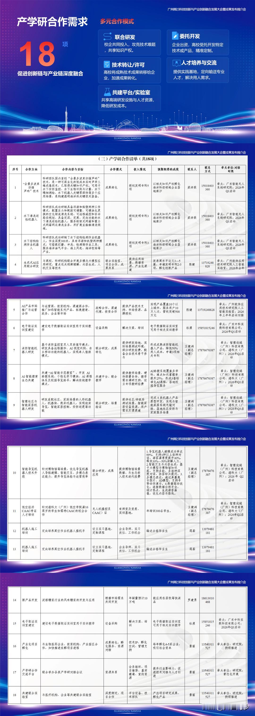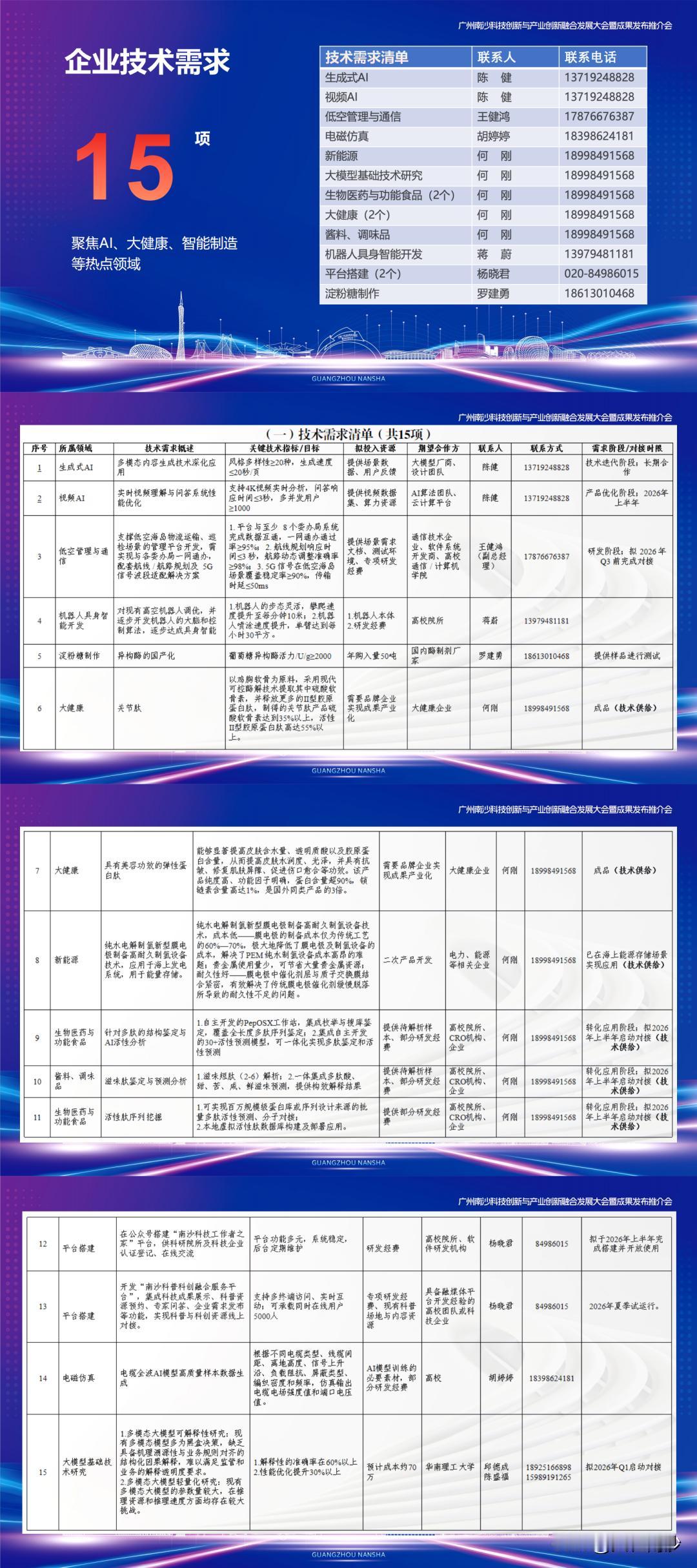 【南沙20亿元采购需求意向集中发布】2026年广州南沙科技创新与产业创新融合发展大会举行,会上南沙真金实银助力高科技企业,发布了20亿元的年度采购需求意向,“意向采购清单”,涵盖四大领域:海洋科技、新能源、装备制造、信息技术。每一个领域下面,都列着具体的采购方向,包括海洋探测设备、风电装备核心部件、工业机器人控制系统、车规级芯片等等。助力南沙加速打造粤港澳大湾区科技创新与产业创新深度融合的高地。 会上还发布了南沙首批创新机会清单。清单围绕“需求牵引、场景驱动、产研融合、市场落地”的理念,构建了从研发到市场的全链条创新生态。据悉,本次清单全面覆盖AI、智能制造、生物医药、低空经济等重点领域。邀请高科技企业入局南沙科产共融新机遇!