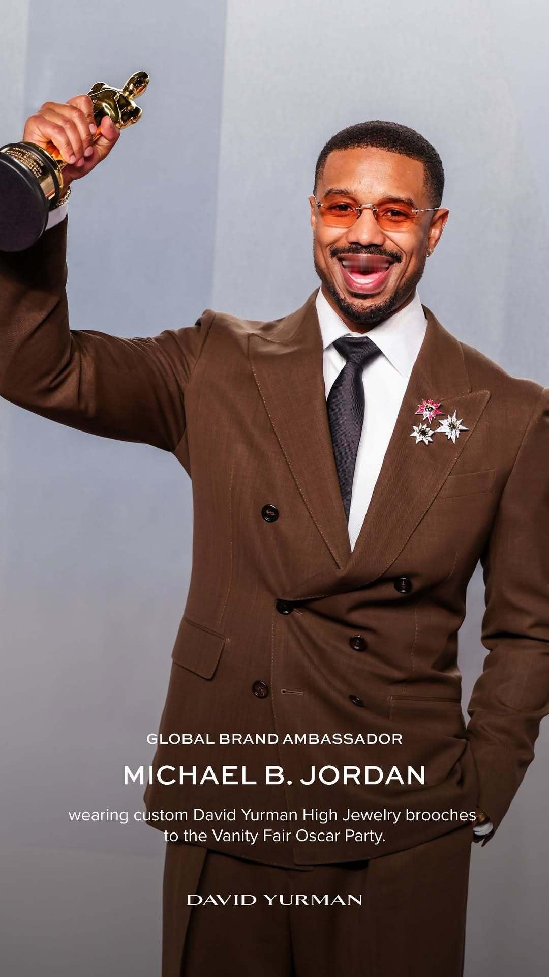Michael B. Jordan 以奥斯卡影帝身份出席本届奥斯卡颁奖典礼及名利场派对,所佩戴珠宝为David Yurman 特别定制款。