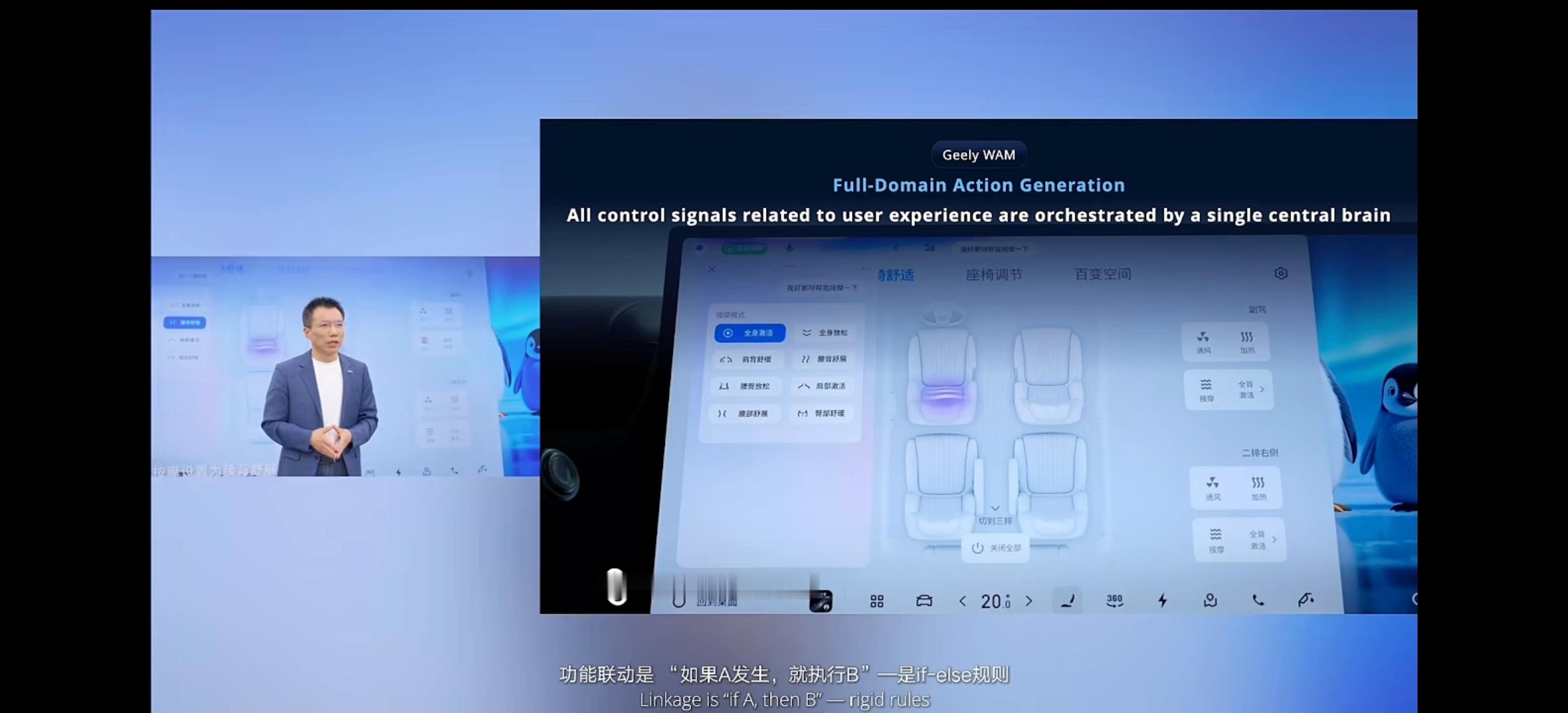 就像直播里讲的那个场景:路边突然冲出来个小孩捡球,换做普通车,顶多就是慌慌张张猛一脚急刹,很容易被后车追尾,但WAM不一样,它能提前预判孩子的跑动路线,一边稳稳刹车,一边微调方向避险,同时还会顾及后方来车的距离,整套成熟又安全的避险动作,毫秒之间就全部完成了。看完我才真正明白,这才是智能汽车该有的样子,从以前的被动反应,到现在的主动预判、全局统筹,安全感直接拉满,这才是实打实的技术进步!吉利发布舱驾融合关键成果