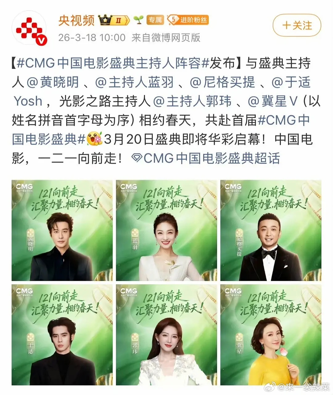 于适又又又做主持人啦,首届CMG总台电影盛典
