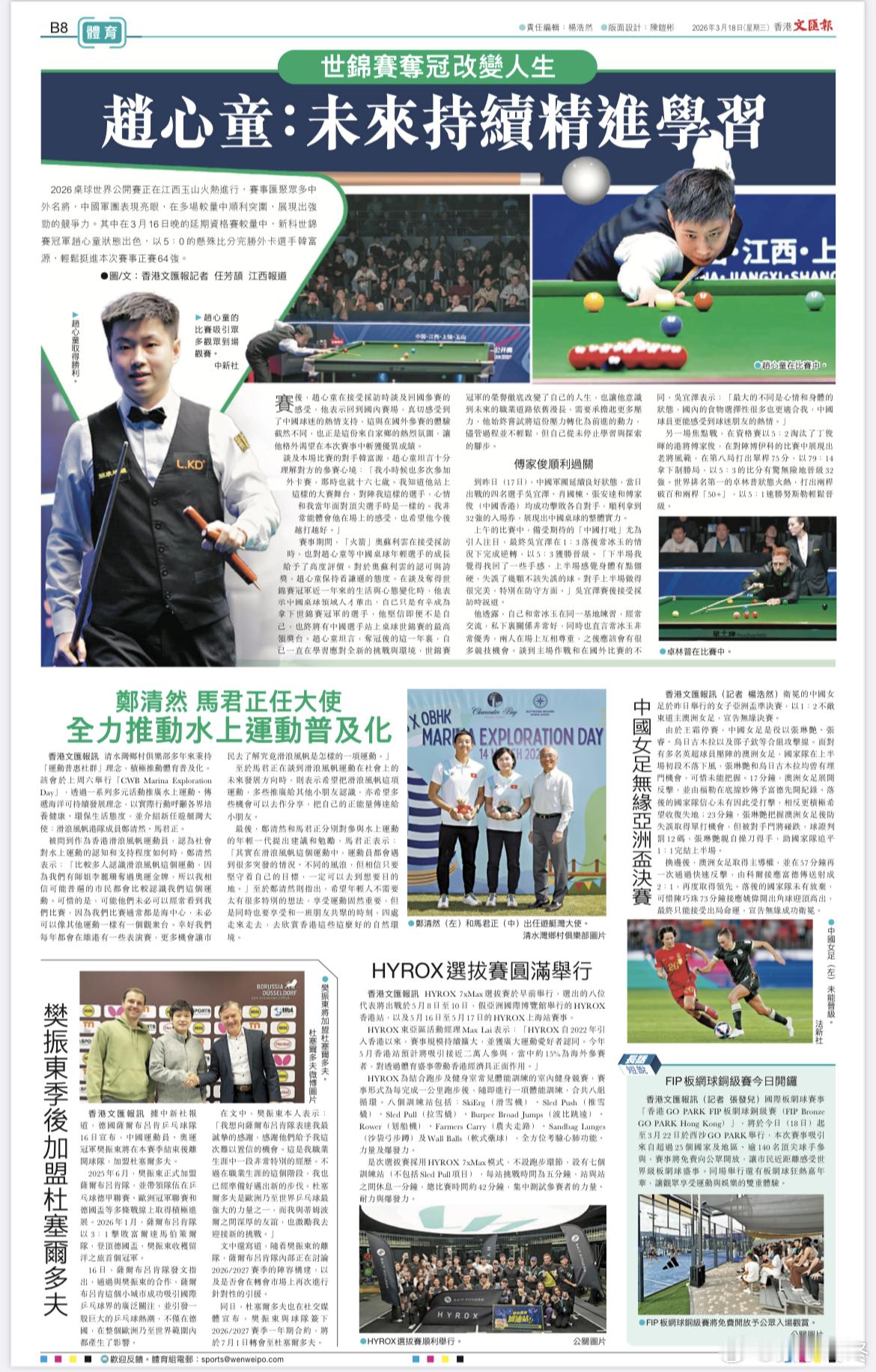 樊振东转会更见人情味樊振东下赛季加盟杜塞尔多夫樊振东 3月18日的香港文汇报和3