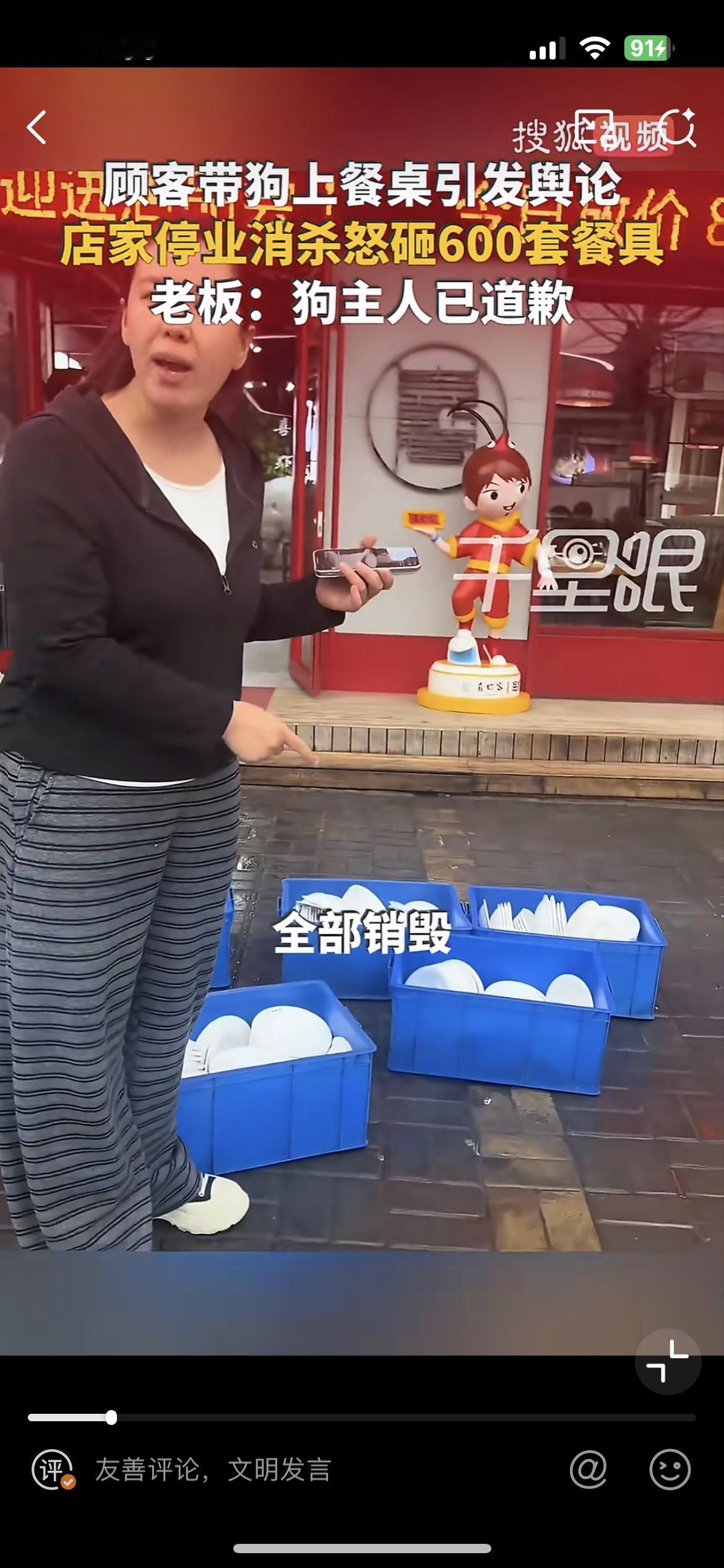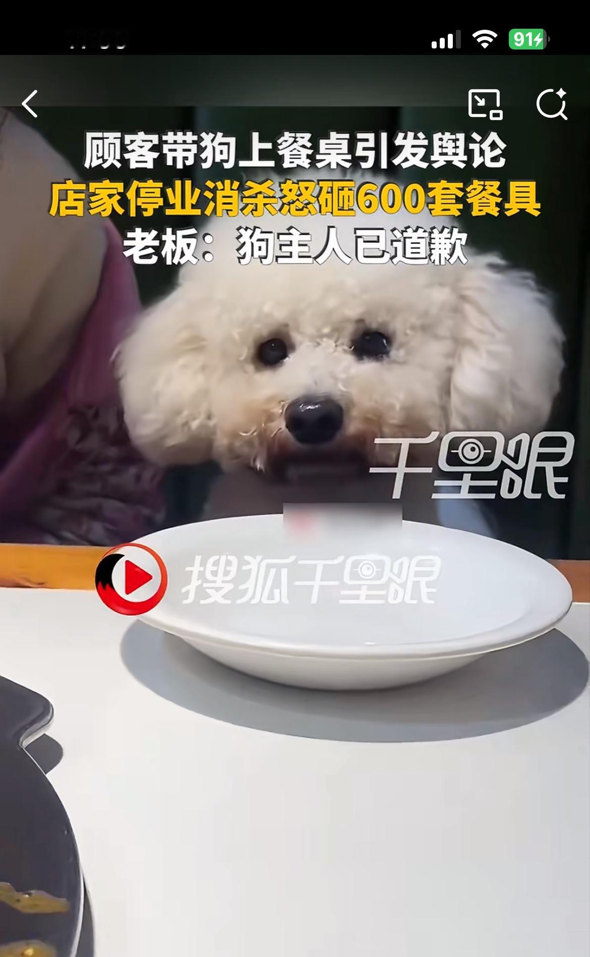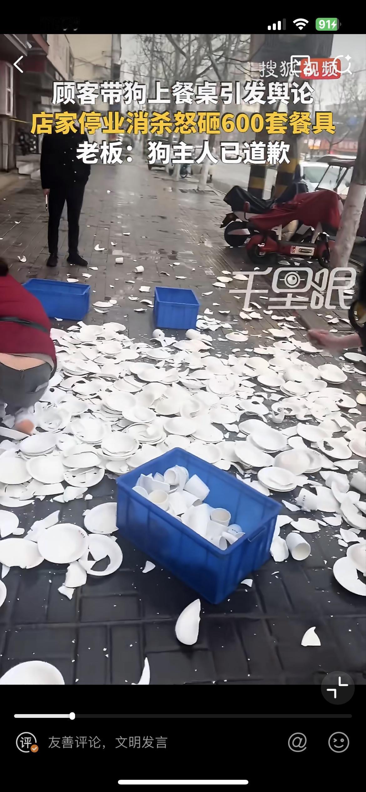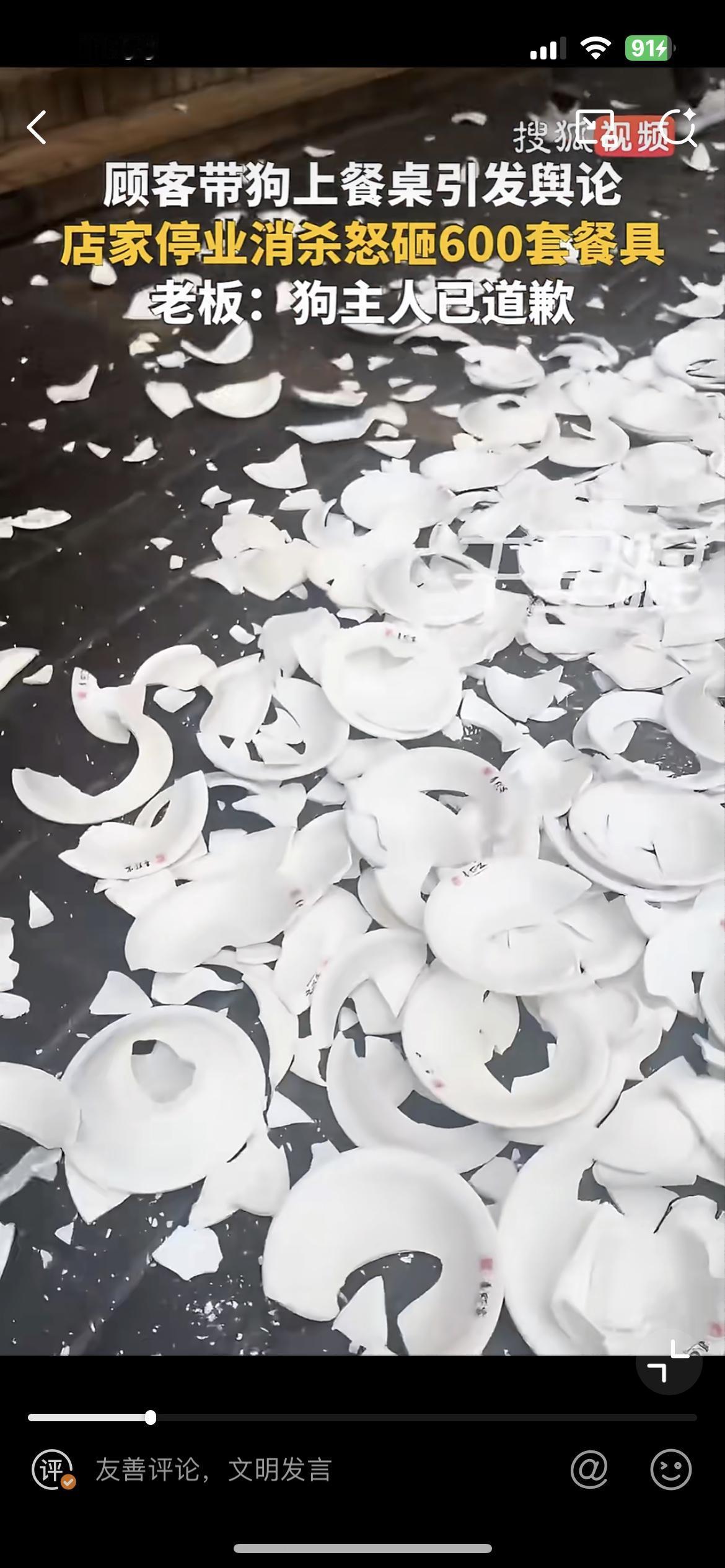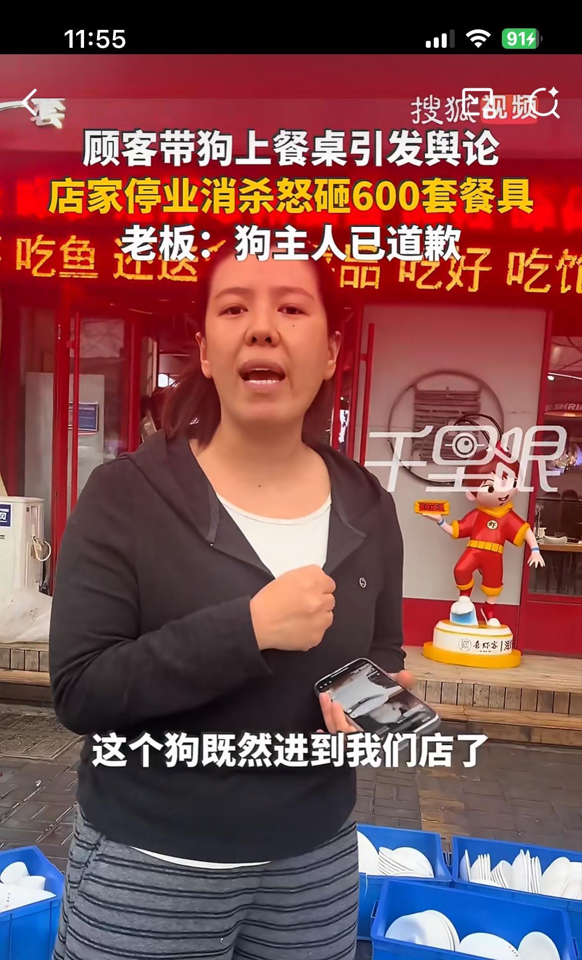 顾客带狗上餐桌发视频上网,饭馆生意一落千丈,老板一气之下砸毁所有餐具,损失上万元。河南商丘一饭馆老板娘说,因为顾客带狗进店用餐,而他们店是不允许狗进店的,因此影响了餐馆的生意,所有的损失他自己承担,销毁所有餐具,打消大家的疑虑。狗主人看到老板的举动,非常自责,连忙道歉。这一波老板的硬刚体现了担当,博得了大家的好感,这不流量就来了吗?