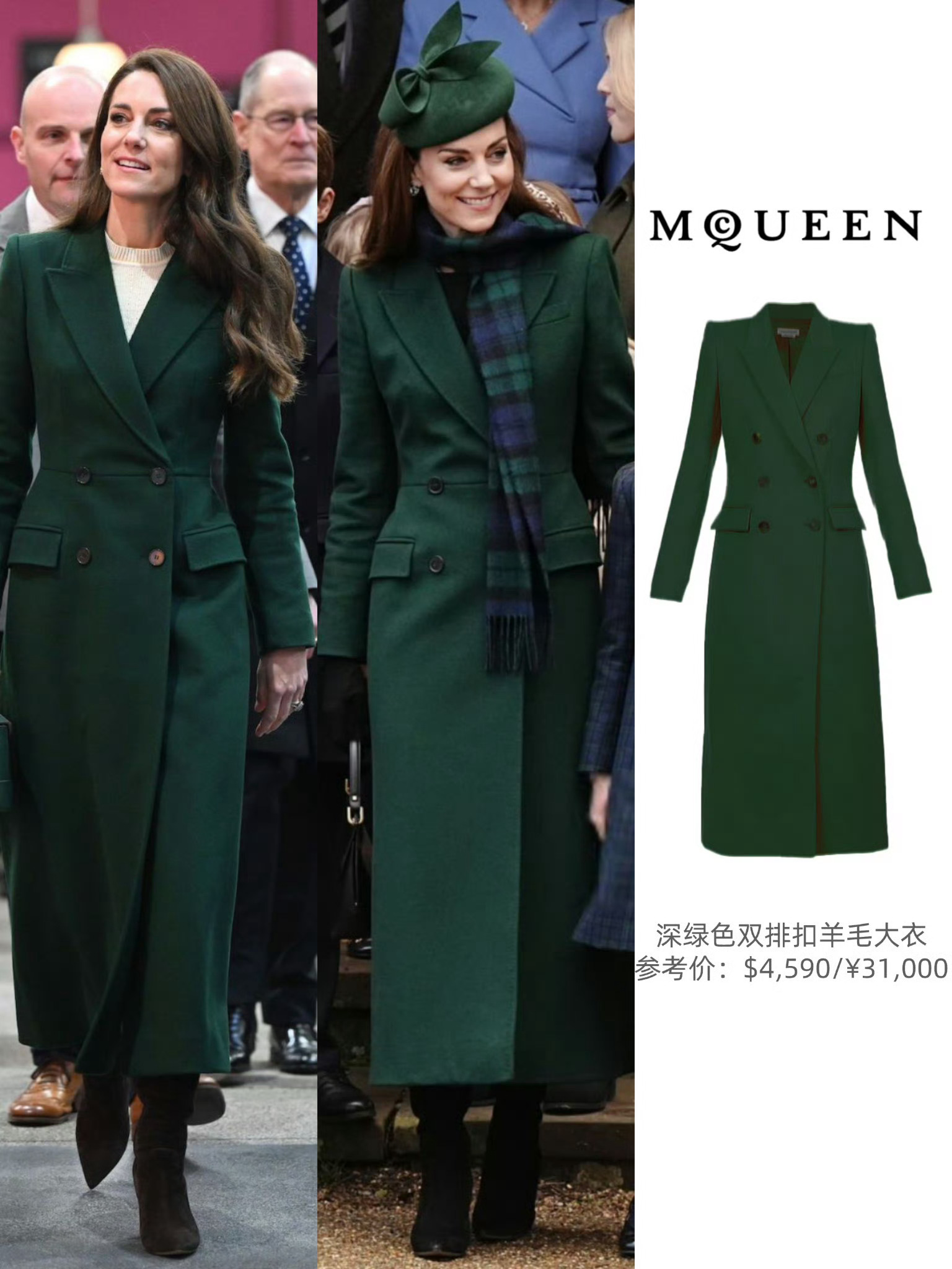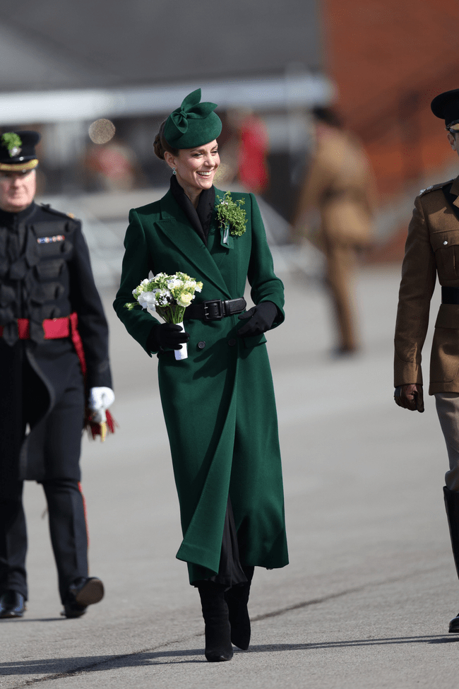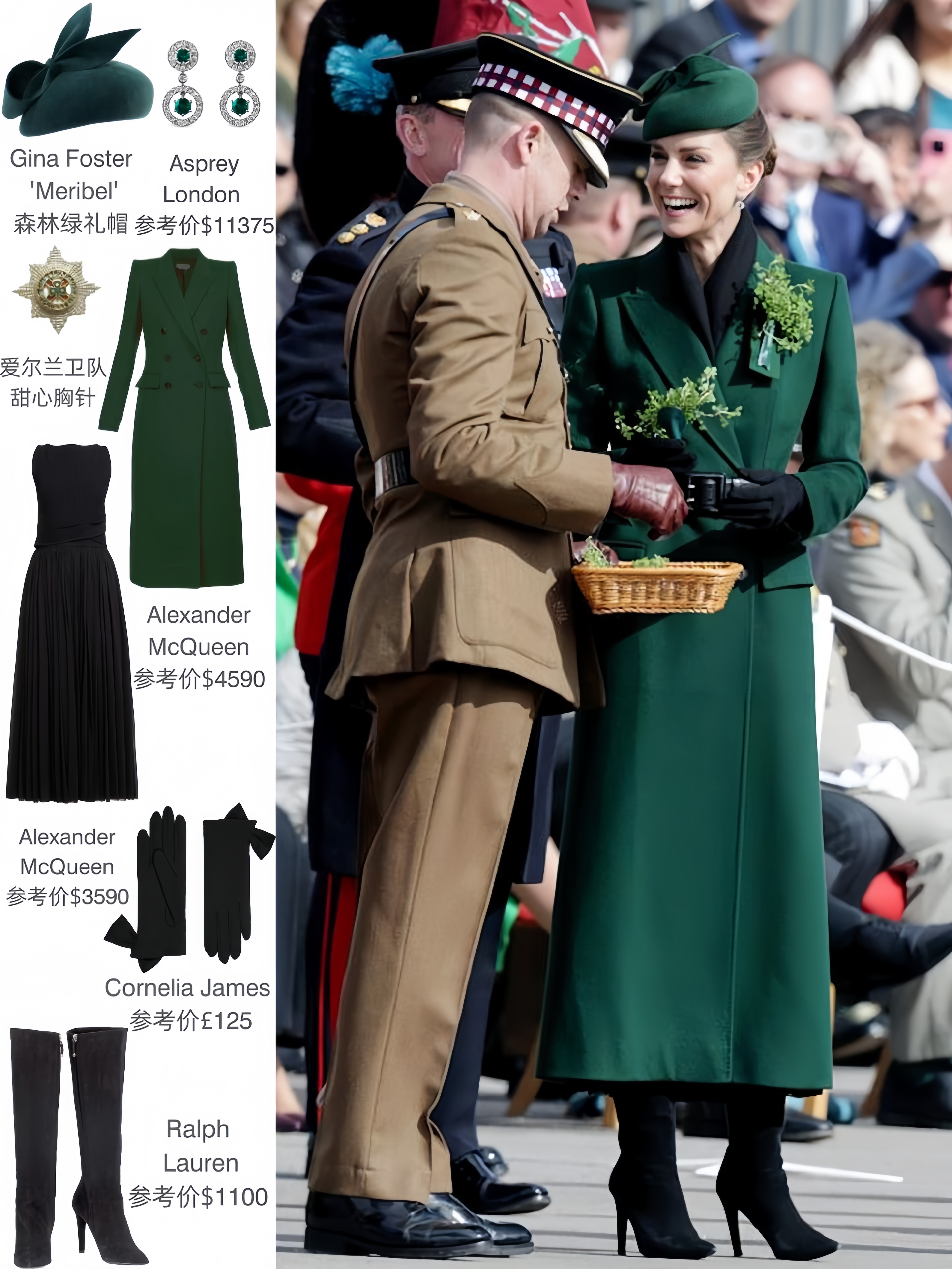 这一节日是凯特每年限定绿色着装的一日,今年也没例外。重穿了她衣橱里的麦昆大衣,内搭的也是麦昆的无袖百褶连衣裙,从里到外皆麦昆~