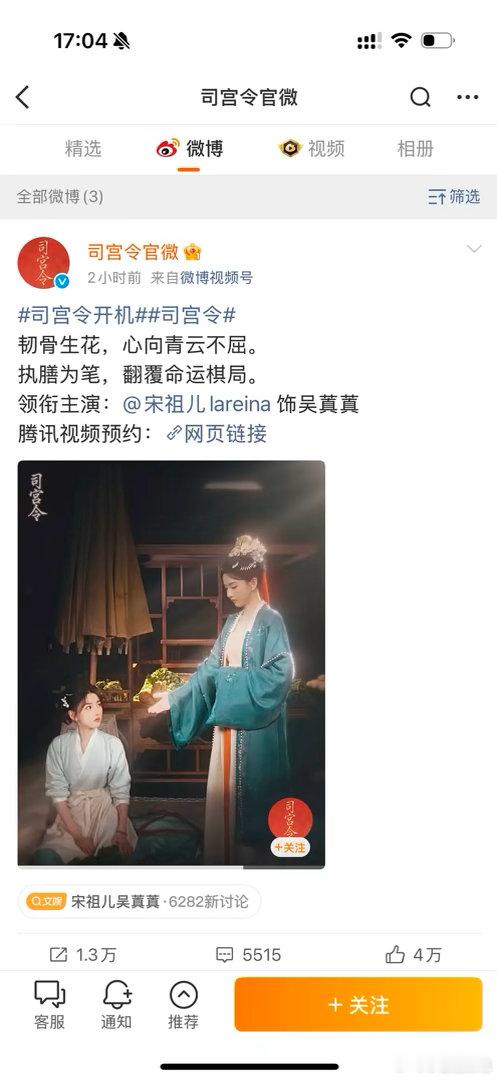 司宫令的官宣这是什么情况?没有番位,没有导演,也没有配角?