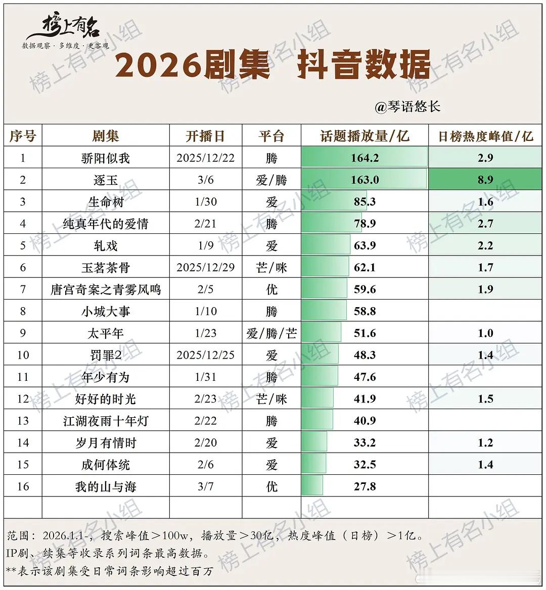 2026剧集抖音指数 ,2026剧集话题播放量