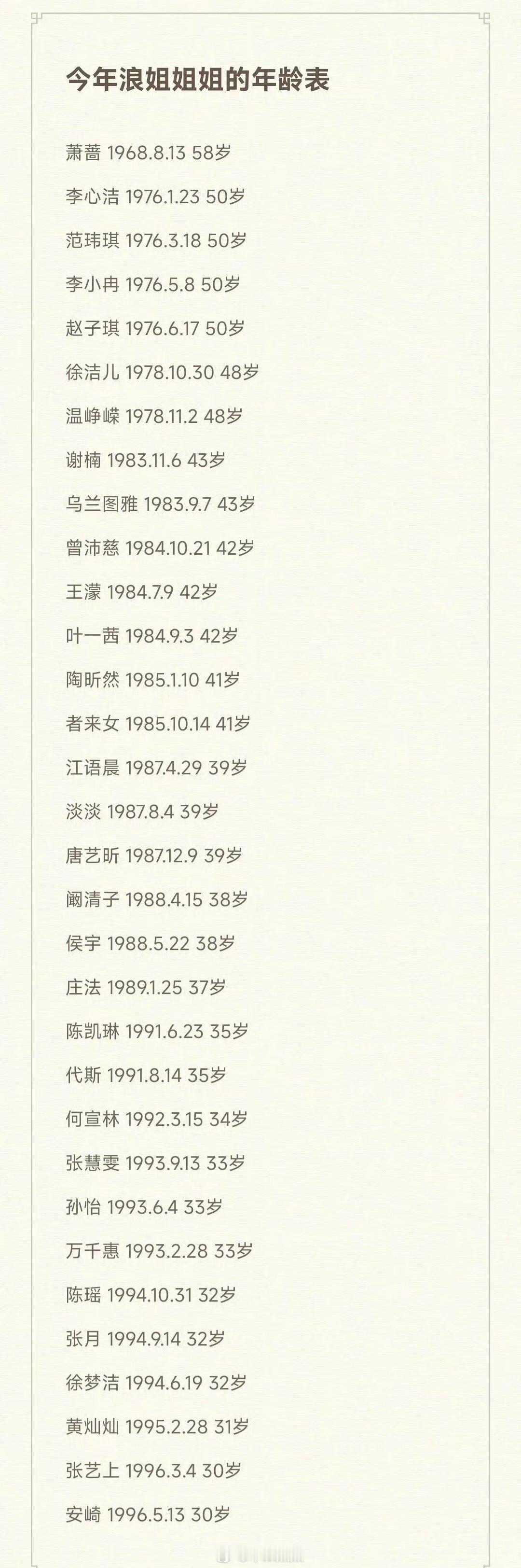 🍉浪姐最终名单确认了:李小冉 范玮琪 张艺上 张月谢楠 叶一茜 陈瑶 唐艺昕 孙怡 乌兰图雅 者来女 万千惠 淡淡 王濛 陶昕然 清子 代斯 侯宇 安崎何宣林 江语晨 萧蔷 曾沛慈 庄法 徐洁儿 徐梦洁 温峥嵘 陈凯琳 李心洁 黄灿灿 张慧雯 赵子琪