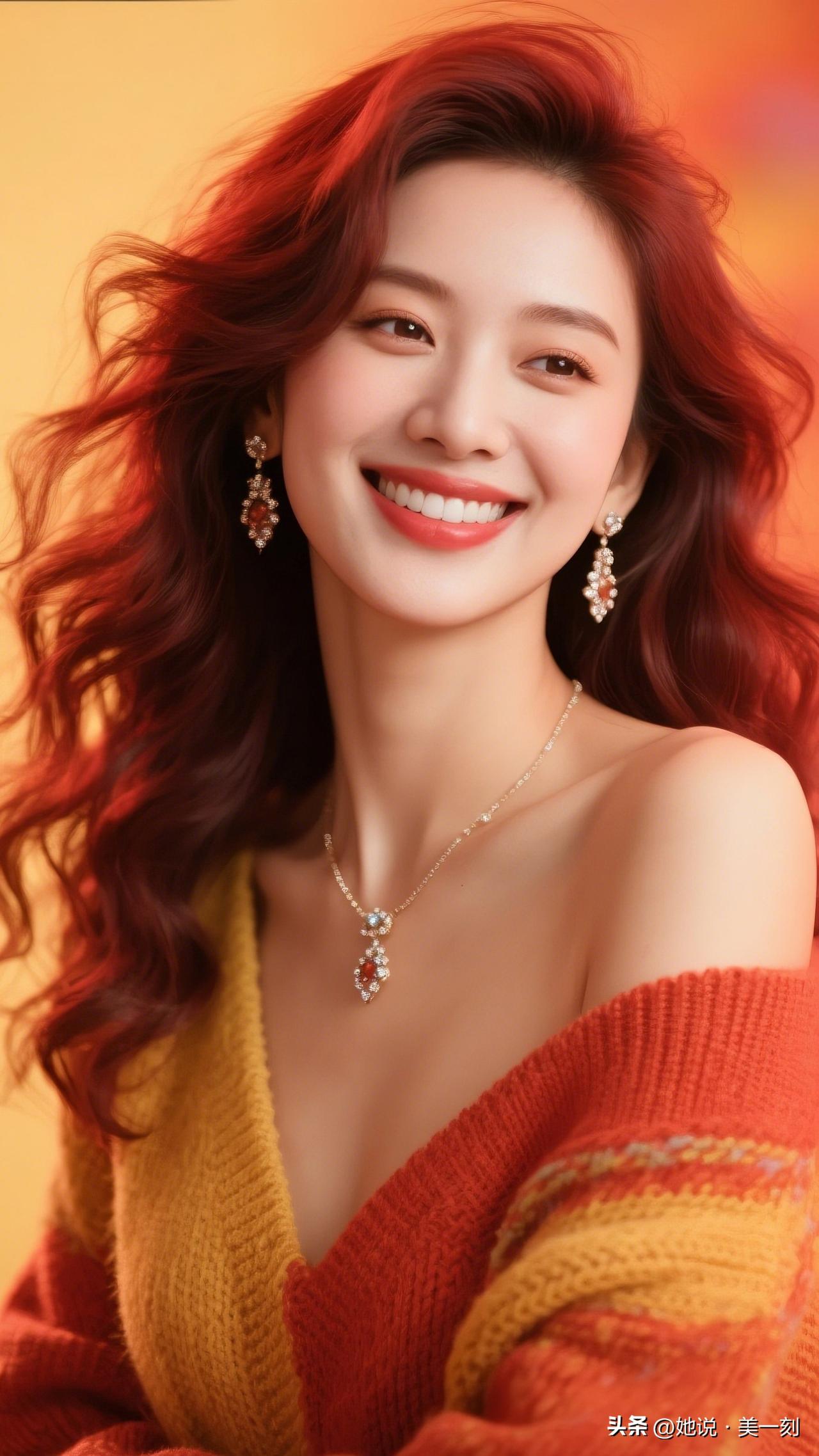 元气少女,红发亮眼,黄色毛衣,温暖迷人。你是喜欢风情万种,还是温柔体贴